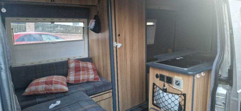 This has been used for Enduro and Motocross but is a very versatile vehicle. It is based around the professionally installed AMF Bruns 'Smart floor'. This M1 tested and certified aluminium floor which features airline rails allowing seats, units, bike mounts, lashing points to be securely fitted, re-positioned and moved around. In the configuration shown there are two genuine Smart Seats installed which are fully M1 tested and certified when fitted to this floor. There is also a Vangear XL kitchen pod featuring dual gas burner, sink, compressor fridge and storage. This comes with a removable table which stored behind it.
