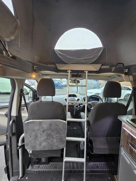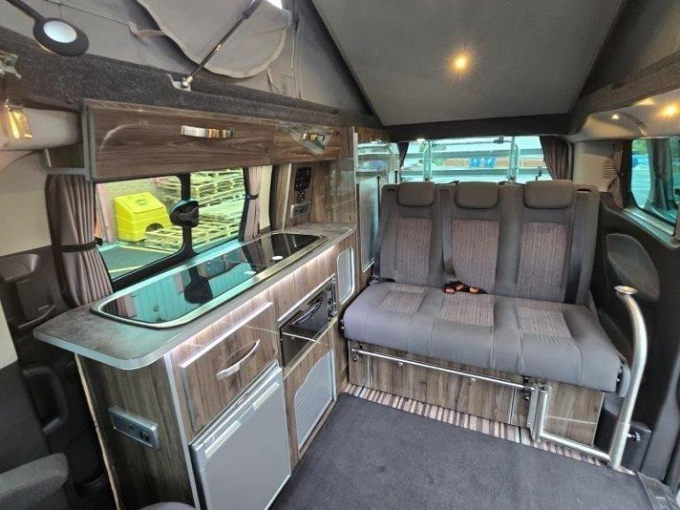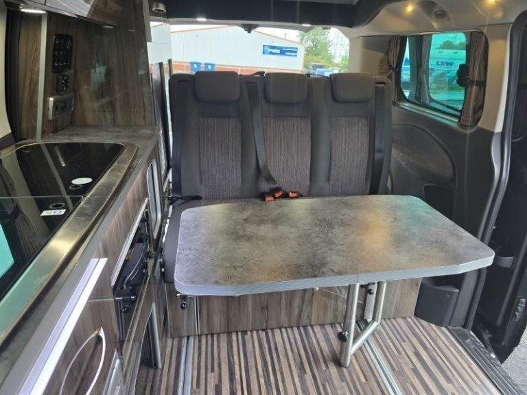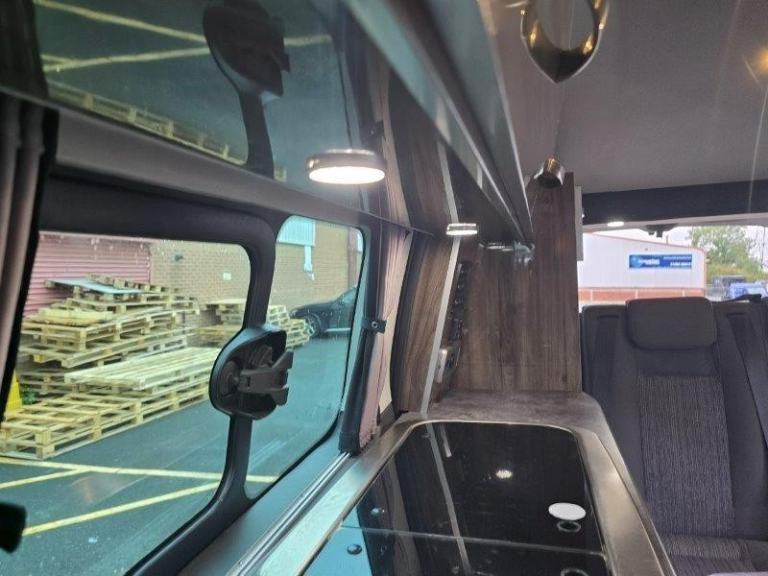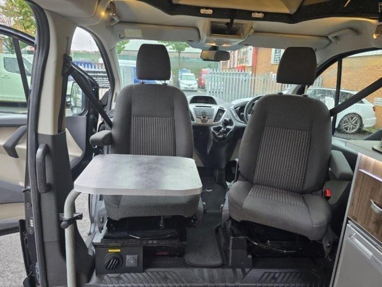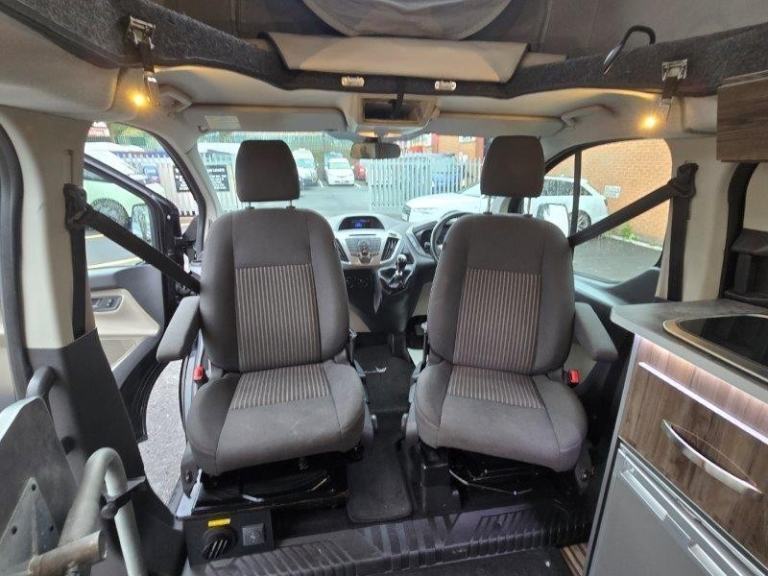 Tourneo standard spec, Air-con, front & rear parking sensors, PAS, electric folding mirrors, Bluetooth, Cruise control, heated screen, single cab seats heated with armrests, glazed tailgate with rear wash wipe. Seat Belts: 5 x 3-point, Power Steering: Front Fog Lights: Tax Class: Motorcaravan: Twin Airbags: Stereo/CD: Height Adjustable Steering Wheel: Cab to rear access: ABS: Electric Windows: Rear Tinted Glass: Immobiliser: