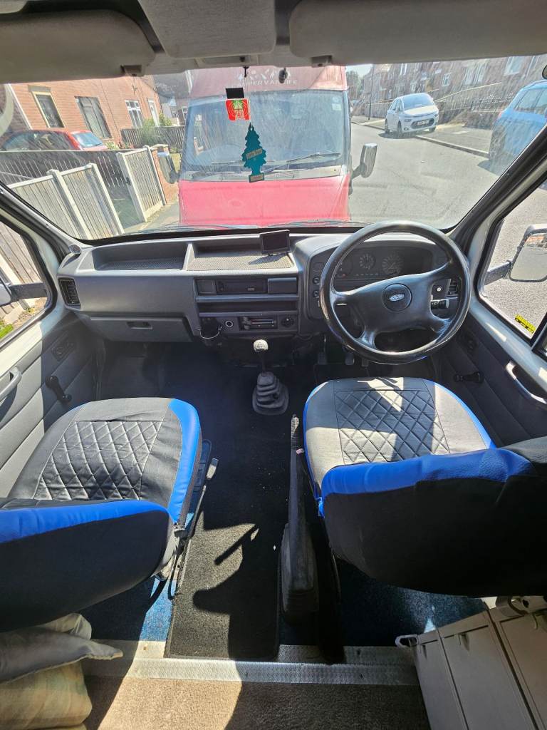 Classic Ford Transit Smiley Face Campervan, 12v and 24v hook-up with inverter and Solar Panel for off grid electric, only board diesel heater, cooker, separate grill, hob, hot and cold water, toilet, 2 berth with lots of storage and t.v plus outside shower. This van runs lovely with a bullet proof engine, very good condition for it's age, obviously a bit of wear on the paintwork but it's normal for a van of this age, not many smiley face vans left on the road, we've camped in this van very comfortable for the last 2 years and spent about £2,000 on replacing all 4 shocks, front bearings, inner and outer panels on the drivers side, front new tyres.