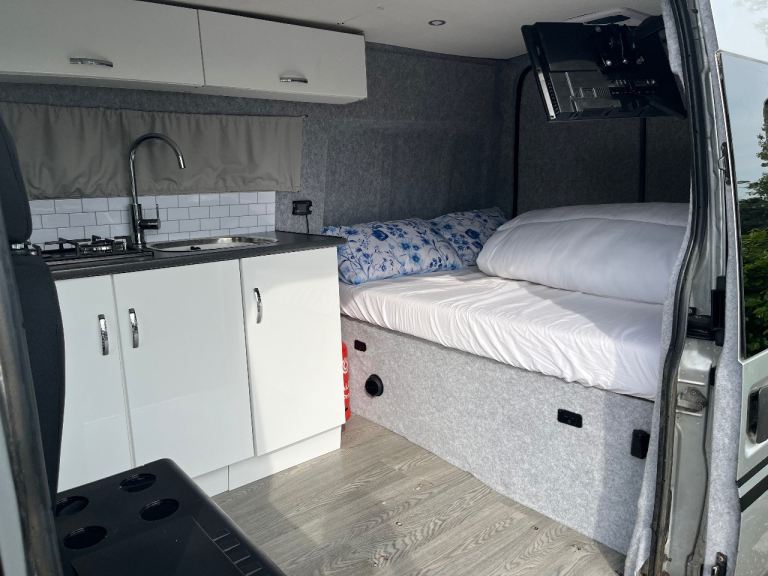 Here I have my beloved home on wheels for sale I've owned it for many years now and enjoyed every moment it can sleep up to 2 people comes with Alpi cooler fridge that can be controlled by your phone via Bluetooth, a diesel heater with a 10L tank also can be controlled by you phone, lights all round including outside led light, a Tv, running water, gas stove, usb sockets installed, skylight with fan, 3 storage compartments under the bed bike rack and also roof bars but roof box has been taken of its all you will need for a getaway it's a 6 speed manual drives absolutely superb 2 keys full logbook, any inquiries please message me and I'll be happy to assist