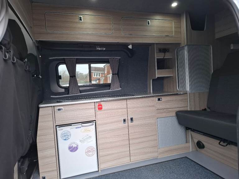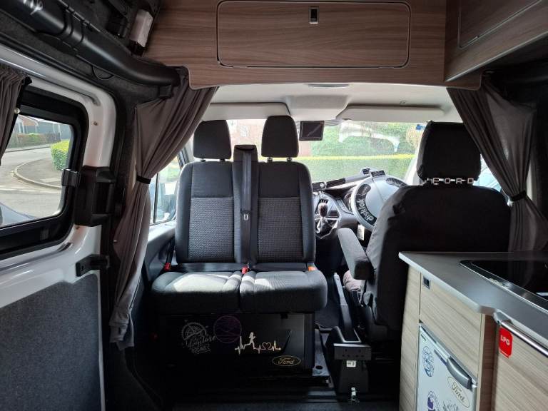 Professional convert ,has solar ,mains hook up ,Inverter, aerial ,us. Sockets ,the evo rock and roll bed natches the front seats ,lovely camper ,the van was registered initially with a ford dealer, a good friend bought it with 132miles on the clock ,then I bought it and gad it converted, have got history, and just had a m.o.t until 02/03/26 any trial welcome ,located Bromsgrove Worcestershire
