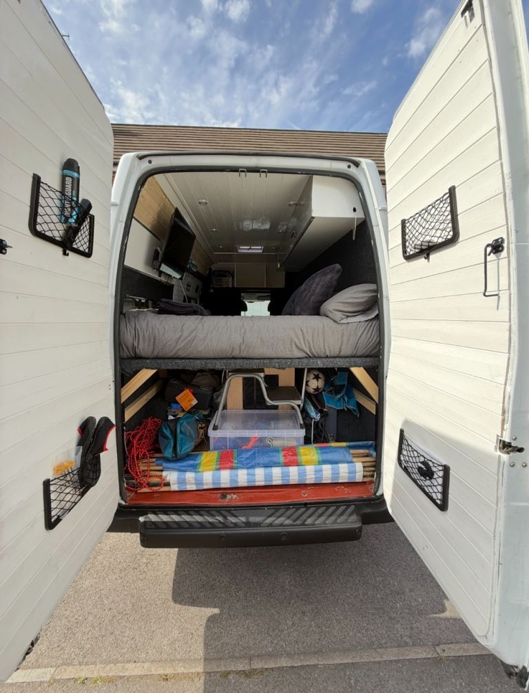 - Loads of storage- Double fixed bed/ comes with mattress - Single pull out sofa bed - Full size camping toilet (new in box) - Apple CarPlay/andriod upgraded stereo - reversing camera - Climb through hatch to drivers cab - Off grid capable - Carbon monoxide detector - Fire extinguisher and fire blanket.