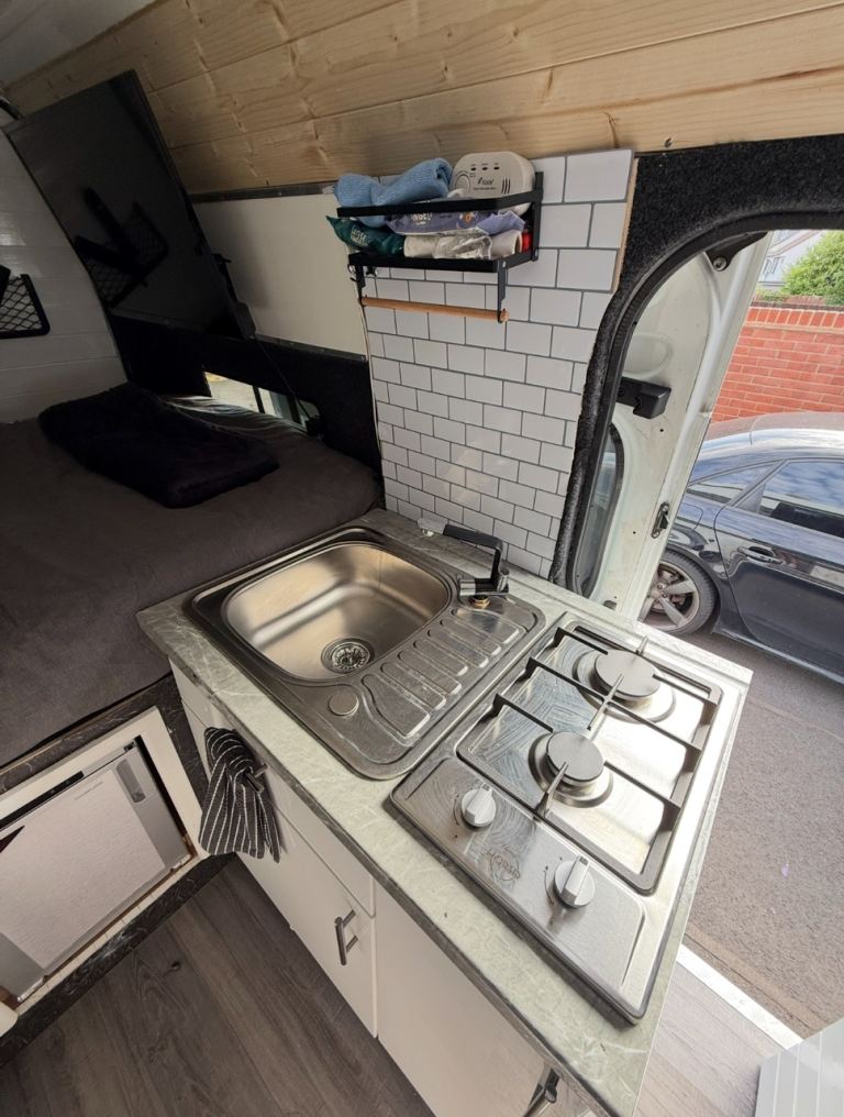 - 12v cold water pump - 12v compressor LG fridge Freezer(new) - Full size sink and drainer - double burner gas hob - Campingaz 907 gas bottle.