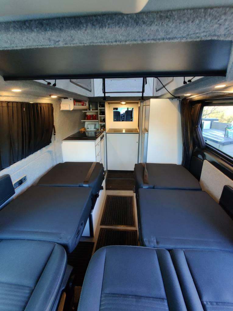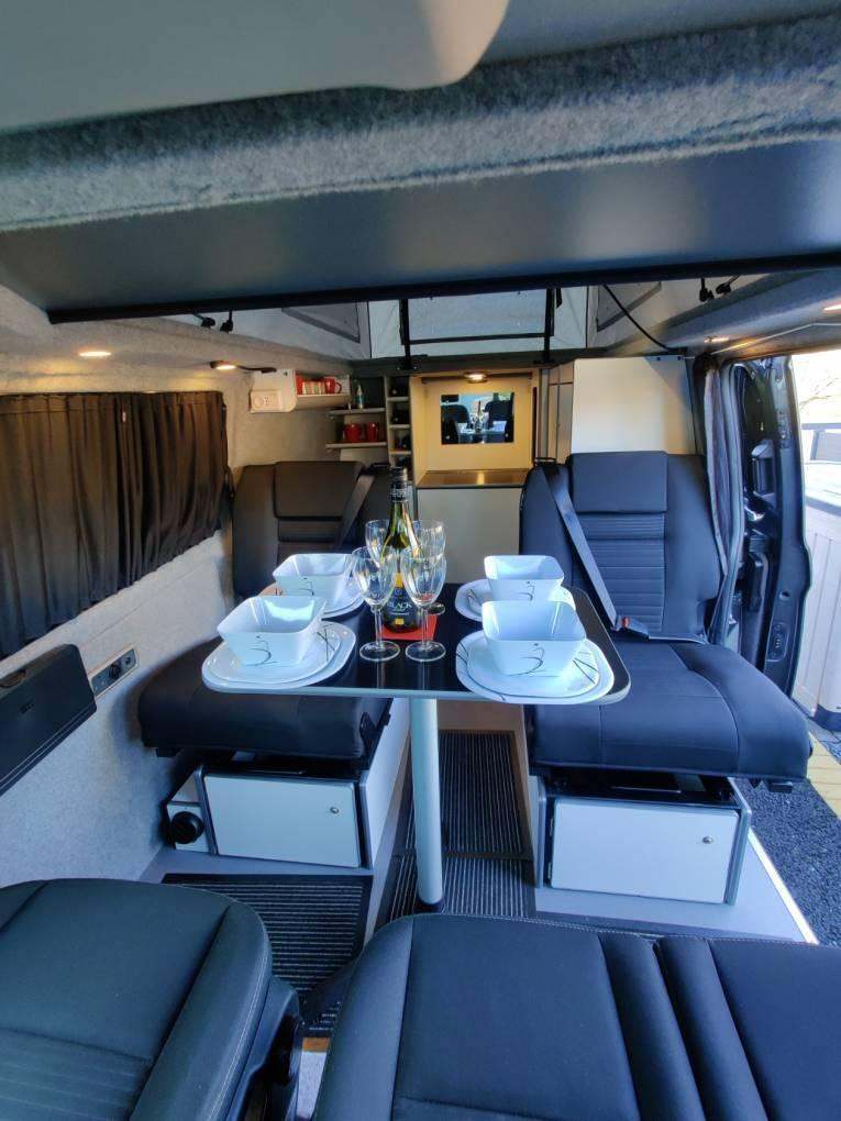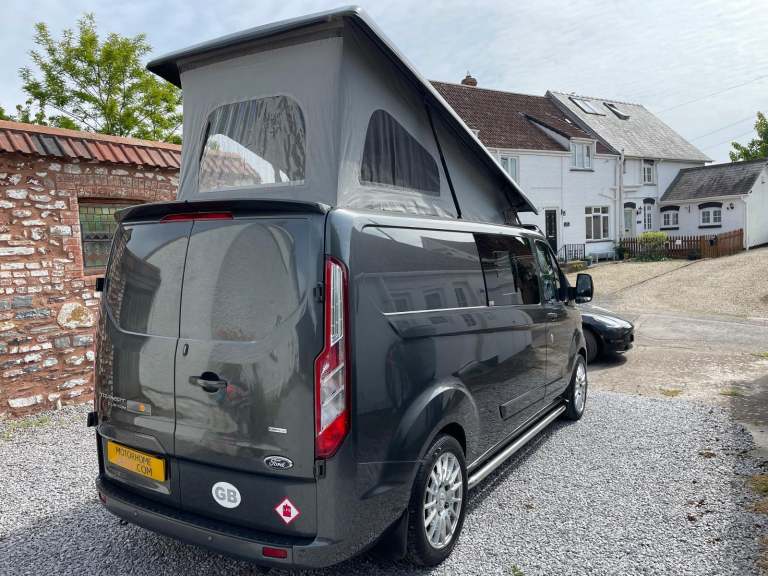 Motorhome depot are delighted to present this Ford Transit Custom 300 LTD bespoke campervan by specialist converter "Revampavan"The Transit Custom has a superb specification enabling you to be self-contained and stay off grid.Features include:Four berths with two single RIB beds and a double sleeping platform in the pop-topPop top is front hinged to maximise living space & headroomDometic cassette flushable w/c with privacy screenSolar panel and gas heating with LPG tank for self contained livingFive travelling seats with the drivers and passenger twin seat revolving to the living areaFord Transit Custom 300 LTD van re-mapped from 130 - 180 BHPExcellent storage with multiple internal cupboards and a rear garage area with hanging & storage spaceCab air con, apple/android carplay, reversing camera and F&R parking sensorKitchen area with twin hob & sink, also external gas bbq pointThis van will appeal to singles, couples and families with young children as it offers flexibility and comfort.