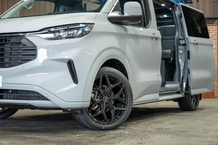 We have also upgraded the alloys from the standard size 16” to a set of gloss black 20” alloy wheels which suit the Grey paintwork perfectly while complementing to the sharp style of the new Transit Custom.