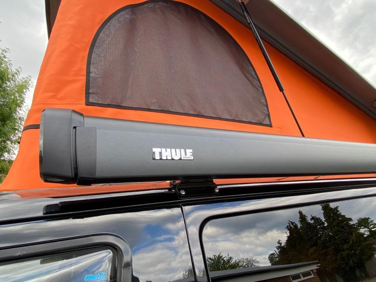 • Skyline pop-top roof with orange scenic canvas and white gloss bed board