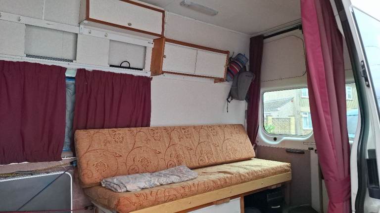 PART CAMPERVAN CONVERSION with insulated walls,flooring,single bed - pulls out to double, cupboards, side windows, curtains, full set of silver padded windows sun-shades. One private owner from new - used only for recreation and commuting by entertainer. Has a superb 1.9L diesel engine, mostly motorway mileage and has a high axle ratio for this purpose.