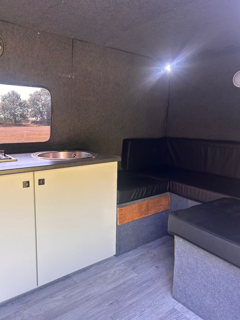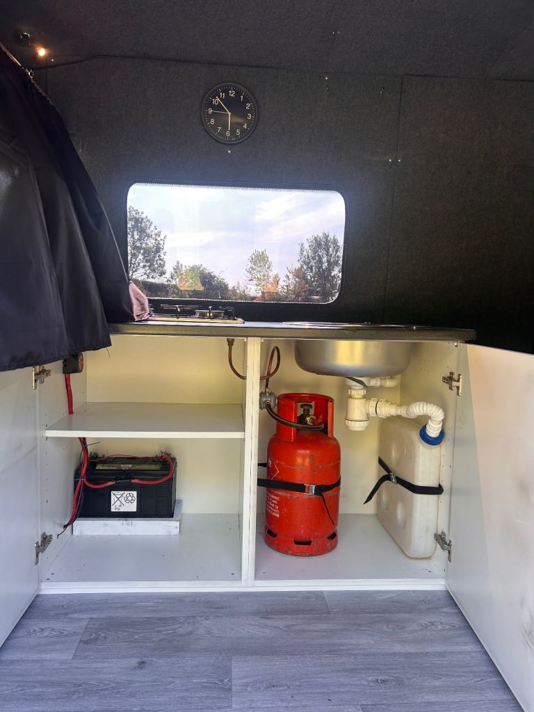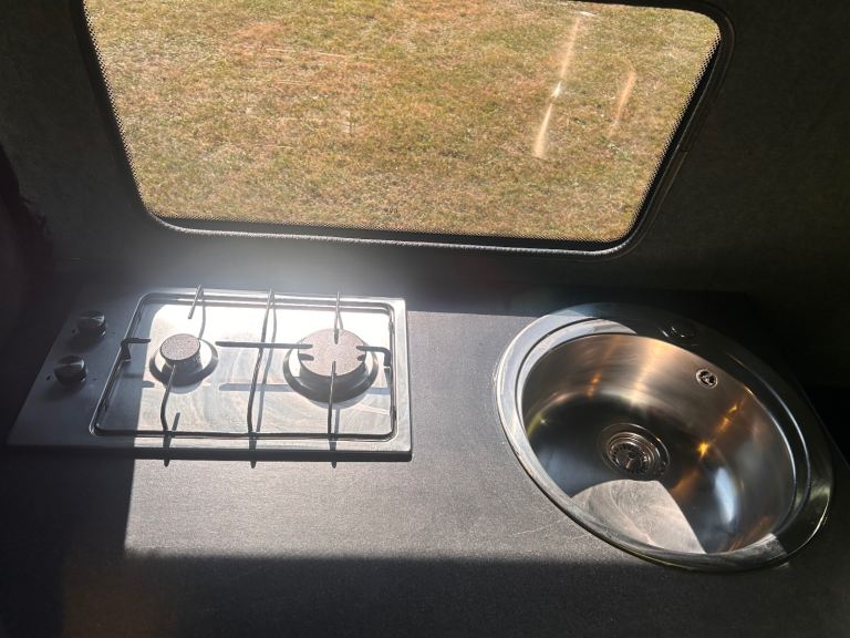 * 2 ring gas hob with domestic sink, gas bottle included.