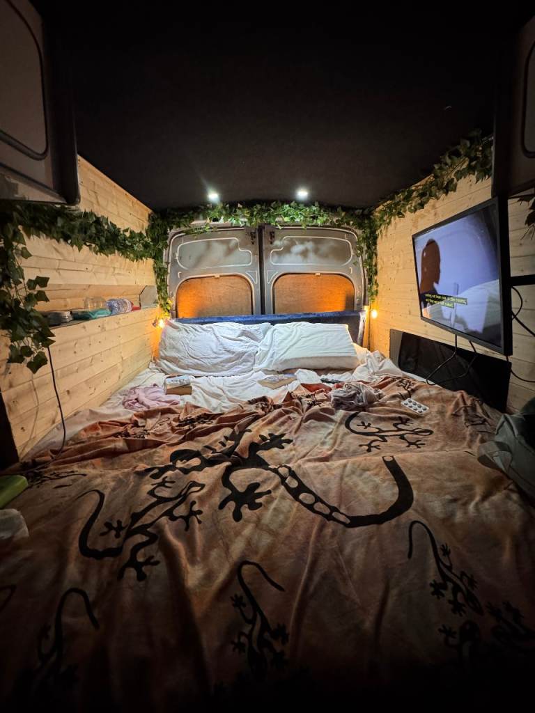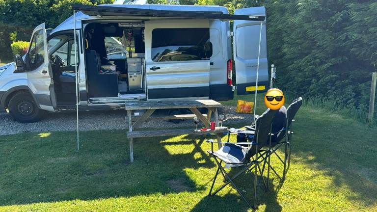 I'm including a complete set of six insulated/blackout blinds There is a huge garage space with ample room for an inflatable paddleboard , table, chairs and everything you need for a camping holiday.