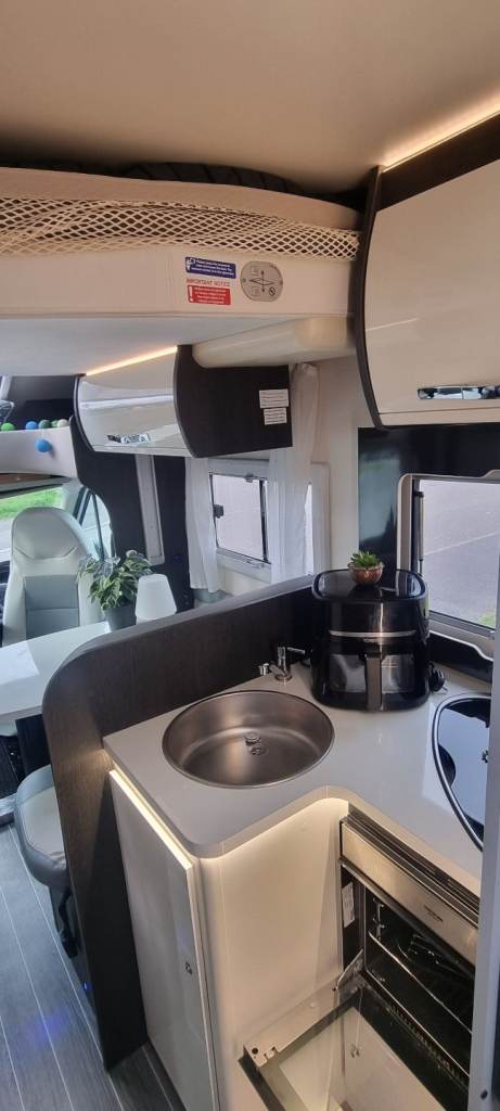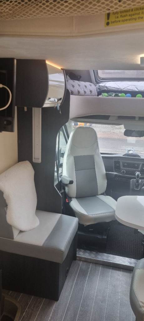 The 2021 Rollerteam Zefiro 696 is a superbly designed motorhome that perfectly blends comfort, practicality, and modern convenience—ideal for couples or families looking to explore in style. This versatile 4 berth, 4 belt model offers a spacious and intelligently laid-out interior. It features a comfortable rear fixed bed, providing a permanent sleeping area, while the electric drop-down bed above the lounge adds extra sleeping space at the touch of a button—perfect for maximising both day and night use. Built for effortless driving, this Zefiro 696 comes with an automatic transmission, ensuring a smooth and relaxed journey whether you’re touring the countryside or navigating city streets. The integrated radio system and reversing camera add both entertainment and confidence behind the wheel. Inside, the motorhome boasts stylish leather upholstery, giving the living area a premium feel while remaining durable and easy to maintain. The well-equipped layout ensures comfort on the road, with plenty of room to relax, dine, and unwind. Practicality is key, with features such as a solar panel for off-grid capability, a bike rack for outdoor adventures, and a large rear garage space offering excellent storage for all your travel essentials. Whether you’re planning weekend getaways or extended road trips, the Rollerteam Zefiro 696 delivers everything you need for a comfortable and enjoyable journey.