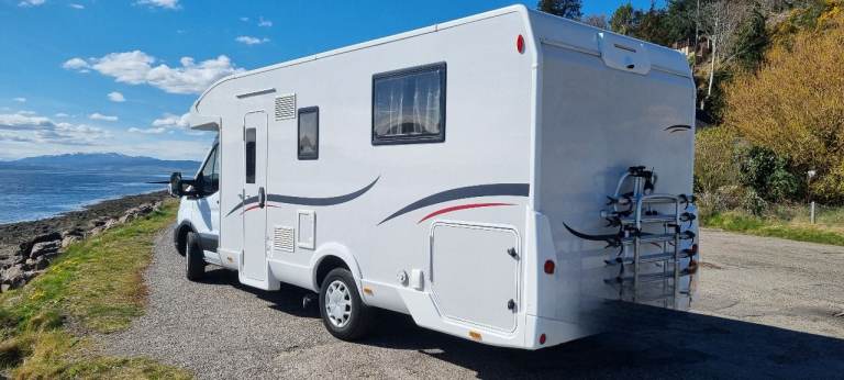 Key Features: • 4 berth / 4 seatbelts • Rear fixed bed • Electric drop-down bed • Automatic transmission • Solar panel • Radio system • Reversing camera • Bike rack • Large garage storage • Premium leather upholstery