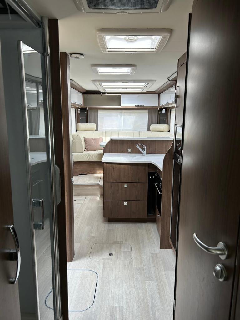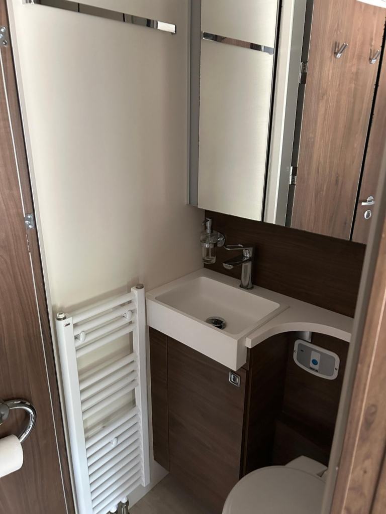 The Frankia I 8400 Plus Platin is a top-tier luxury integrated motorhome, designed for comfort, space, and off-grid capability. It sits in the Platin “I 8400” range, built on the Mercedes‑Sprinter 519 chassis, with a lot of high‑end standard equipment.Usually for 4 people the Platin Plus Consists of a drop‑down bed over the cab + convertible lounge bed Lounge / Seating: “C‑shaped” round seating group in lounge, very light‑flooded interior. Kitchen: MaxiFlex kitchen – which is the larger, deluxe kitchen layout in this model line. Features include 3‑burner hob, good fridge/freezer space, etc. Bathroom / Washroom: Sap style shower and cubicle, washbasin and toilet Energy, Utilities & Off‑Grid FeaturesSolar panels: Four high‑performance solar panels on roof to help with off‑grid power. Battery system: Lithium battery setup plus inverter Heating / Insulation: Alde heating system (wet‑water), underfloor heating in lounge in many versions. Also good insulation etc.