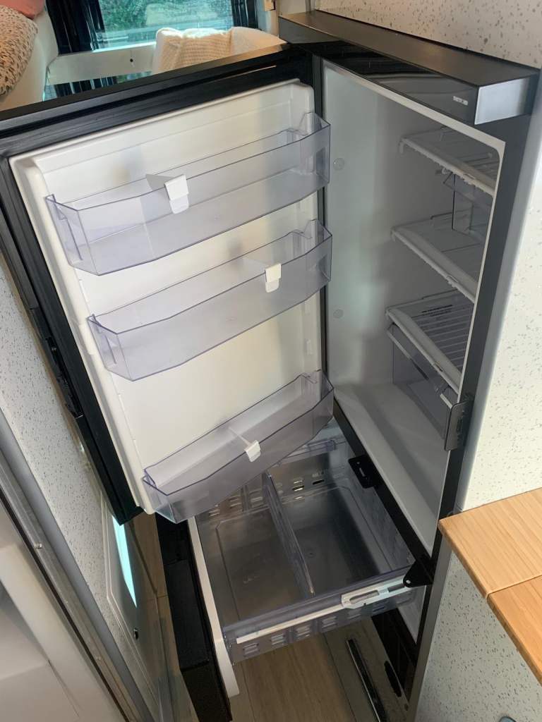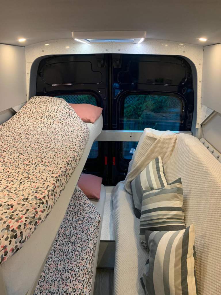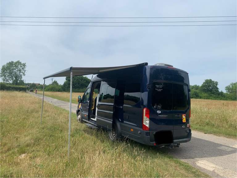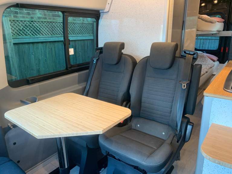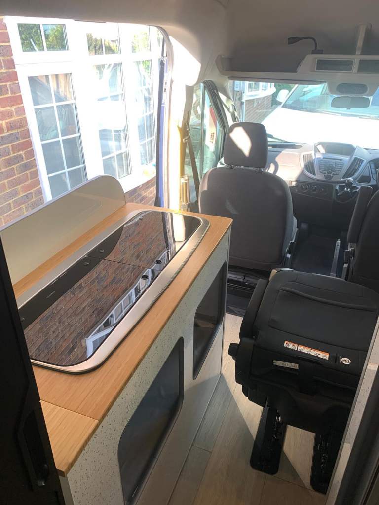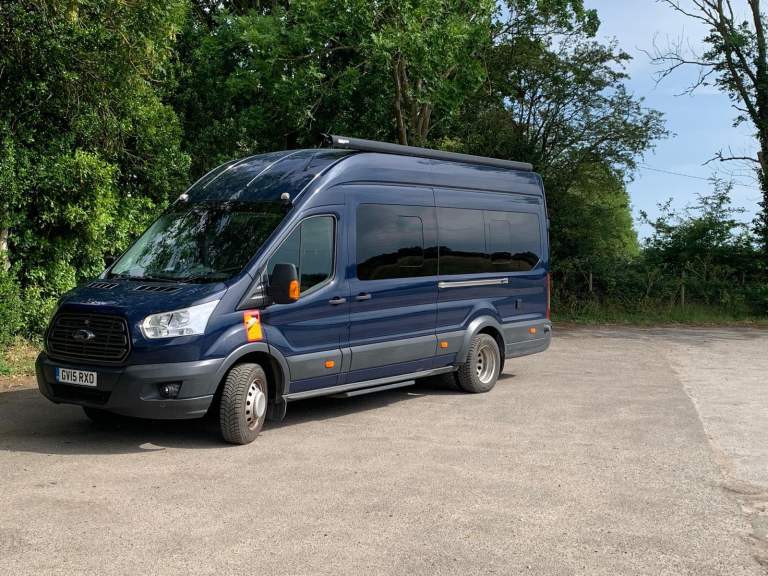 Fully winterised off/grid camper. Ultimate comfort & practicality high-spec custom build with top-quality components. Unique 4-berth panel van featuring crash-tested, reclining/removable Ford seats. Key features: Heating/Water: Truma 6E (gas/electric) blown air with 10L hot water; 125L inboard fresh water (lagged pipes); external shower. Gas 44L GAS IT underslung tank (cheap to fill, weeks of use). External BBQ point. Kitchen: Dometic twin hob/sink; Thetford 120L compressor fridge/freezer (80L fridge, 40L freezer); 40L kitchen waste tank. Power: Victron solar (380W), MPPT (Bluetooth), mains charger (Bluetooth); 280Ah gel leisure battery; Voltronic control centre & 70A B2B charging. Washroom: Dometic cassette toilet (ceramic bowl, electronic flush); GRP shower cubicle; 80L shower waste tank. Living area: Scopema RIB swivel front seats; dimmable LED lighting, 6x reading lights, 3x USB; Maxx Fan Deluxe; Fiamma F80S 4m awning. Build: 15mm lightweight furniture plywood; sheep's wool insulation, foil vapor barrier; 25mm PIR floor insulation (Karndean finish); Spung-slatted lower beds, 4 memory foam mattresses; folding bunk beds/sofas. Safety: LPG/gas alarm, smoke/CO alarm. Exterior: Electric automatic side-step; aluminium security/mosquito mesh vents (front); tow bar. Base Vehicle: Ford Transit Minibus Euro 6 engine. Twin rear wheels (stable in crosswinds), 6 Michelin Cross-Climate tyres. Airconditioning, electric mirrors/windows, heated screen, auto lights/wipers, cruise control, hands-free phone preparation. Full Ford service history; new turbo, intercooler, AdBlue injector, brakes/discs in last 2 years. Minor side dent. Proven across Europe (Norway to Spain) in extreme temperatures (+40C to -12C). Superior build quality; ideal for year-round adventures. Only selling because we need a twin axle caravan to be based permanently in Austria. Just reduced for quick sale as need space on driveway …