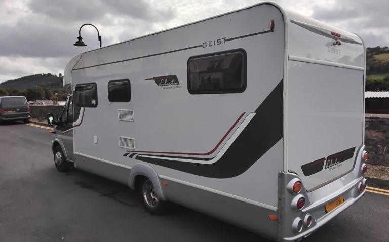 Geist Liberty Cruiser 708T....... Adventure, Redefined!!The Geist Liberty Cruiser 708T — the ultimate fusion of freedom, comfort, proven underpinnings and thoughtful design. Built for those who refuse to compromise, the 708T transforms every journey into a first-class experience. Whether you're chasing coastlines, exploring remote countryside, or living life on the road, the Liberty Cruiser delivers German quality engineering, luxury finishes, and smart living features — all in one beautifully presented 3500kg [Website URL removed] and immaculate cab area featuring air conditioning and two swiveling seats that form a part of the 6 seater lounge dining areaLounge/dining area converts into comfortable & accomodating single bed bedRear bedroom area can be configured as comfortable twin singles or a king size double, these can be tilted from "head end" to give "sat up" positioning!Abundance of storage including lots of hanging space in rear bedroomCentral area included kitchen and toliet/shower/washroom areaDometic 3 ring hobDometic Fridge with ice boxDometic sinkRoller waste water tankExternal BBQ pointFiamma F45S wind out awning120W Solar panel, coupled with leisure battery, mean that power can be sustained for up to 5 days "off grid"Combi boiler providing enough hot water for a shower within 20 mins of parking up!Trauma Blown air heating system6 speed manual gearboxReverse cameraGas Low system (refillable on board gas bottles), with UK & EU adaptors3 x 240v 3 pin socketsReading lightsHook up cableGarage dimensions....1100mm door height1200mm internal height760mm door width1000mm internal width150kg garage payload, (also heated, and provides hook up connection pointWe are proud to offer Complimentary 31 Day Free Driveaway Insurance on this vehicle.Vehicle located in Brecon, (LD3 postcode), viewing by easily arranged appointment!Part Exchange, Finance and Warranty Options Available. For many more photographs - Please enquire above, or call Ashley on [Phone number removed]or 01453 709469 - I'll be very pleased to help!