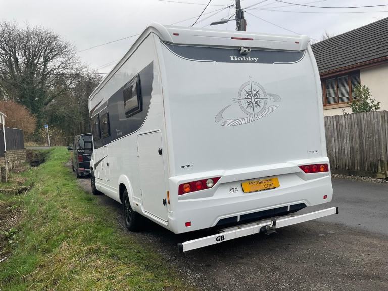 MOTORHOME DEPOT NEWPORT, PRESENT THIS LEFT HAND DRIVE HOBBY OPTIMA T70 GE LOCATED IN MERTHYR TYDFIL, SOUTH WALES.- LAYOUT FRONT DINETTE MAKES SINGLE BED - MID KITCHEN - SEPARATE WASHROOM & SHOWER - REAR TWIN SINGLE BEDS OVER GARAGE- FLATSCREEN CELLO TV - 2 STANDARD GAS BOTTLES- 120w SOLAR PANEL 2 X LEISURE BATTERIES- 2 OWNERS FROM NEW- NEW MOT 02/03/2026 NO ADVISORIES From the renowned Hobby stable, the Optima T70 GE is a coach-built motorhome that has all the German quality. It is based on the ever-popular Fiat Ducato chassis, powered by a 2287cc Multijet Diesel engine with a 6-speed manual gearbox (130bhp). With only two owners from new and a low mileage of 34980 miles.Cab Features:The cab is well-equipped with:✅ Power steering, cruise control.✅ Air conditioning✅ Pioneer head unit, radio, single CD, and a reverse camera screen✅ Electric front windows and wing mirrors✅ Reversing camera✅ Remis blinds for front and side screensHabitation & Living Area:Entry is via an electric step on the driver’s side. Immediately to the right of the habitation door is a single side seat, with a dinette area opposite. The dinette features:Two forward-facing travel seats with lap & diagonal seat beltsA fixed wall-mounted table with an extending leafSwiveling front seats, allowing comfortable seating for up to five peopleThe table can be lowered at night to create an occasional single bedA TV point is conveniently located to the left of the habitation door for evening entertainmentMoving rear is the L shaped kitchen which consists of: bowl shaped stainless steel sink with chrome mixer tap above; 3 burner gas hob with glass lid to close, above a 12v extractor with downlights. Below the counter are 4 slide out draws. There is plenty of cupboard & drawer space for all your holiday provisions & utensils. Opposite is the large Dometic fridge with separate freezer box this can be powered by 12v, 24v or gas depending whether you are plugged in on site or wild camping. Moving rear again is the bathroom area which is split across the motorhome for maximum convenience. The toilet door can close the aisle making a private area to get dressed in the morning. The separate shower cubicle on the drivers side has Perspex doors to close, a mixer tap and chrome riser for the shower head. Opposite is the washroom which is light & bright with the use of mirrored cupboards there is a cassette style Thetford electric fresh water flush toilet & above a white oblong built in sink with chrome mixer tap. Finally to the rear is the main bedroom with twin single beds over garage. There is loads of storage by the way of overhead cupboards and below the foot of the beds shelves & hanging space. This Hobby Optima T70 GE motorhome is packed with premium features. Whether you’re planning campsite stays or off-grid adventures, this model offers a perfect blend of comfort, convenience, and performance.Heating & hot water are supplied by Truma combination boiler. Dimensions: Gross Vehicle Weight 3500kg; Length 7.38 m; Width 2.33 m; Height 2.78 plus any roof fittings.TO VIEW THE MOTORHOME, SEE THE ADDITIONAL PICTURES, OR IF YOU HAVE ANY QUESTIONS, PLEASE CONTACT NATHAN ON [Phone number removed]AND I WILL BE HAPPY TO HELP.