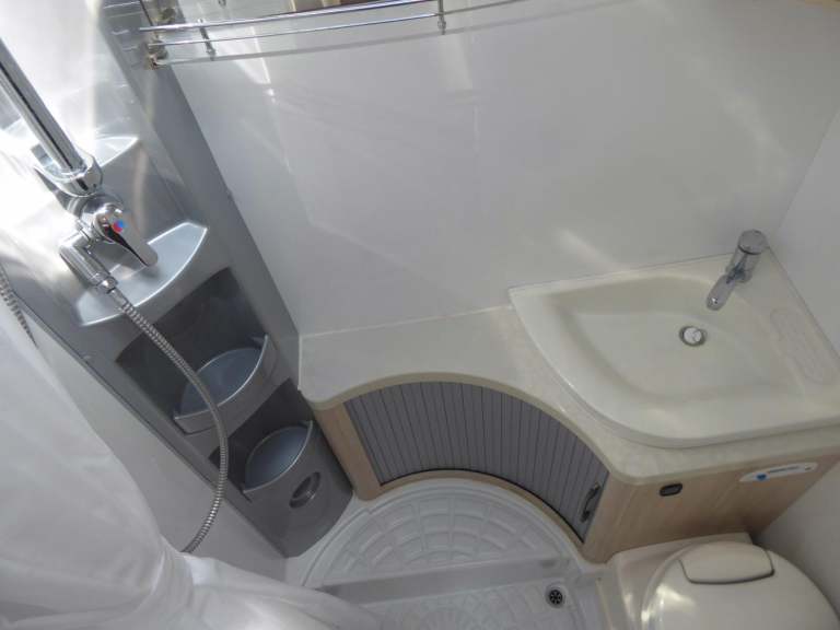 At the rear of the vehicle is another double berth which is transversely located above a large garage space.