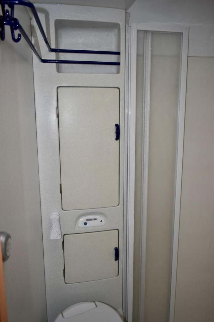Next to the Kitchen is the very Spacious Washroom which features a cassette TOILET, Hand Basin and a Separate Shower Cubicle with screen.