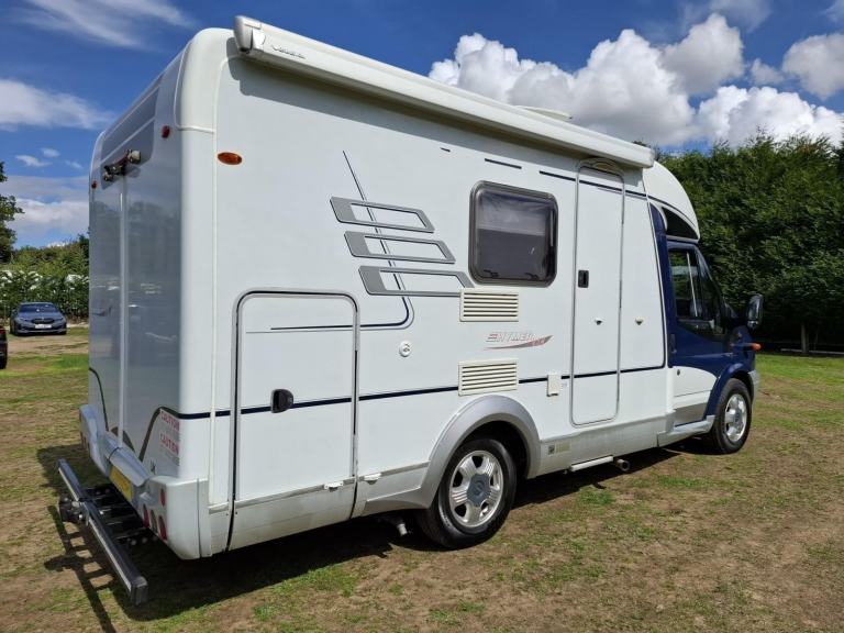 Hymer Van 522 – LHD Suitable for a couple touring Europe. Year: 2008 | Berth: 3 | Belts: 4Engine: 2.2L | Fuel: Diesel | Gearbox: ManualMileage: 85070km (52860 miles) | Price: £22,995 Behind the cab there is a half dinette with two additional seat belts. This area can be further enhanced with the use of the swivel cab seats. This area, with use of the drivers seat can be transformed to a single berth. There is a wardrobe with hanging space adjacent to the offside habitation door. Conveniently adjacent for the storage and preparation of food, the offside central kitchen features a hob with 3 gas burners, a fridge with a freezer box, and a sink. Opposite the kitchen, you can find the wet room, with a shower, a hand basin, a toilet. At the rear of vehicle is a fixed transverse double berth over a externally accessed storage area. Cab Air Con.Electric Windows/MirrorsCruise ControlCD/RadioAlloy WheelsSwivel Cab Seats x2Half DinetteRear Fixed BedLarge Rear Storage AreaHob w. 3 Gas BurnersFridge w. Freezer BoxSinkToiletHand BasinShowerBlown Air HeatingAerialGaslow Refillable LPGElectric StepAwningTow BarSolar PanelLength: 6.2 (Incl. Tow Bar)Weight: 3500kgPlease note that this vehicle can be driven using a standard licence. This vehicle is supplied with a 6 month warranty. Additional images available upon request, with viewing highly recommended (located on our Reading forecourt, RG8). Part Exchanges, Finance and Warranty options available.