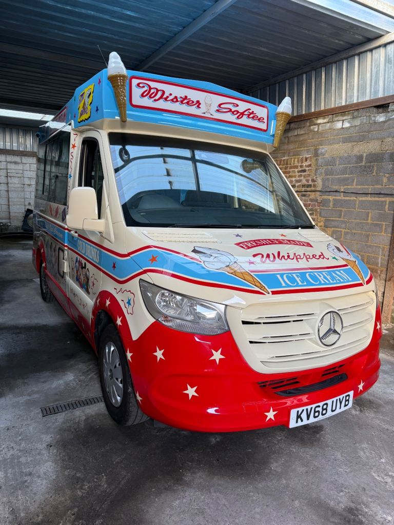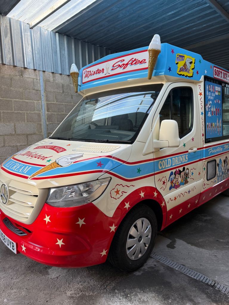 2019 mercedes sprinter ice cream van,4 lids freezer,bock compressor,slush machine,all around camera,recently serviced,run and ready to work