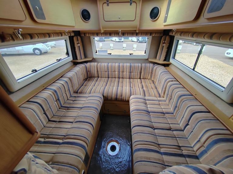 Central Heating; Microwave; Cooker; Air Conditioning; 12V Lighting; Blinds; Grill; Awning; Mains Hookup; Double Glazing; Sink; 240V Lighting; AM/FM Stereo; Hand Washbasin; Round Seating Group