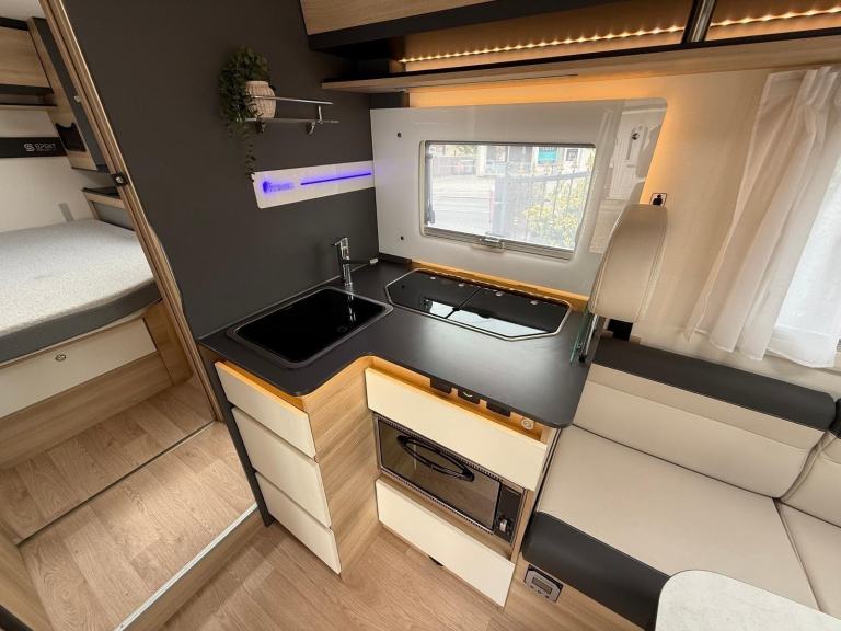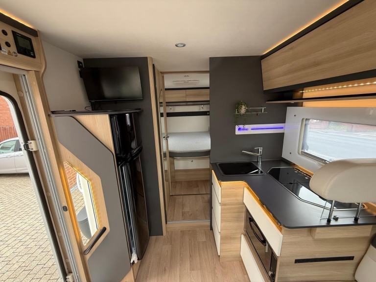 Itineo MC740 Spirit Edition, a Modern A Class Motorhome from Rapido, with Island Bed, Full Sized Garage and Drop Down Bed. This motorhome was registered in September 2024, it has one owner with 1,900 miles on the clock with 9 Speed Auto Gearbox and is in immaculate condition. At the rear of the van is the main bedroom with an island bed and a large garage underneath. Forward from this is the bathroom with separate shower compartment and in the centre there is a well equipped kitchen. Towards the front is the lounge area with settees, captains seats and adjustable table and over this is the drop down bed. It has a beautifully finished light interior and comes with Cab Air Con, Cruise Control, Cat 1 Alarm, Cat 5 Tracker, Rear Camera, DAB Radio, Alloy Wheels, TV, Canopy Awning, Electric Step, 160W Solar Panel, Wi Fi and 2 x Leisure Batteries. A truly stunning motorhome available for viewing by appointmentin Blackpool, call for more photos videos and information.