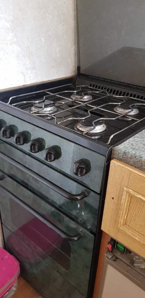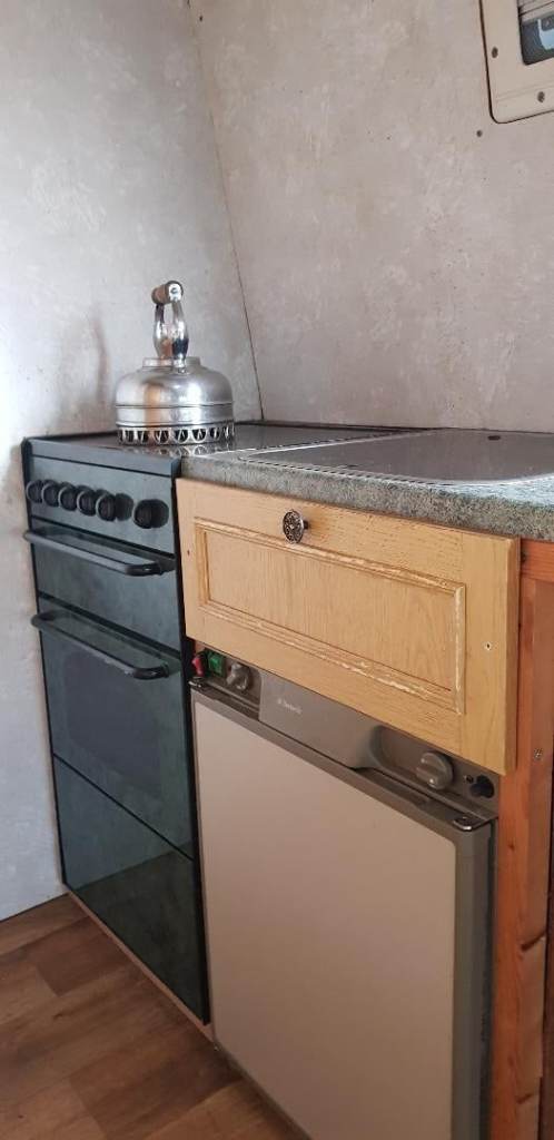 4 burner full size oven, fridge, boiler, plenty of cupboard space, double pull out bed, electric hook up and