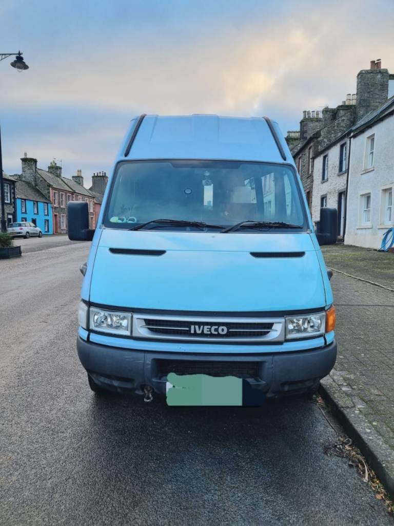 Iveco daily 35 c12 lwb downplated to 3.5ton, so can be driven on normal license. This is a manual Has a double in the back, space in front seating for another couple of beds. wee kitchen area, storage and seats 4 in total with belts. Its not been professionally converted. I used it as a multi purpose van for outdoor sports,