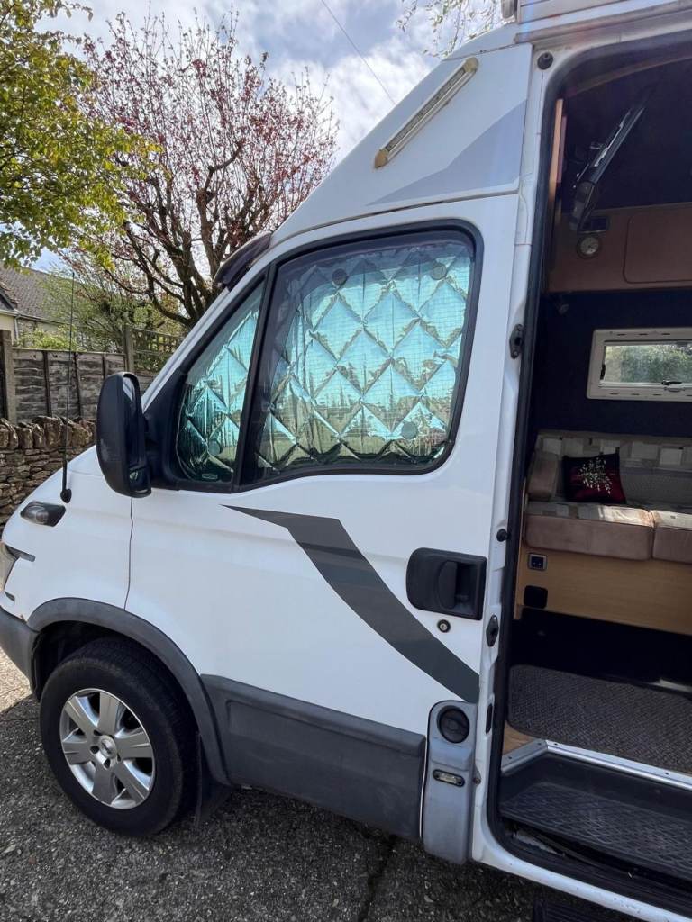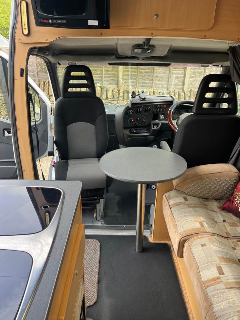 2003 iveco daily 3500kg 2.3 td 12 months mot . Rear air suspension . Cruise control. Swivel front seat . Solar panels. Hot and cold water. Via on borard tanks .3 burner hob . 12 volt compressor fridge freezer. Tv wall mounted included. Fixed small double bed with lots of storage. Mains hook up .all cramping equipment included. Gas bottle 2x leisure battery's. Everything you in the pictures. Awning. Everything is ready to go £5995