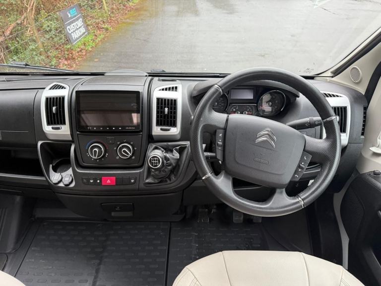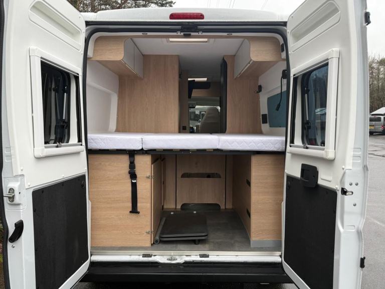 Step inside and it’s brilliantly laid out: the captain’s chairs swivel to create a full, sociable dinette, ideal for meals, planning routes, or relaxing with a brew after a day out. At the rear you’ve got a large double bed that cleverly folds away to reveal a huge garage, giving you the best of both worlds — comfortable sleeping plus space for bikes, outdoor gear, or bulky luggage. Add in a practical kitchenette for on-the-go cooking and a handy wet room, and you’ve got a modern, go-anywhere camper that’s ready to tour from day one. Features Include: air conditioning, bluetooth connection, colour satnav, full leather, cassette toilet, fixed bed, hand basin, shower, wardrobe, fridge freezer, hob, side kitchen, sink/drainer, 3 point seatbelts, central locking, electric windows, power steering, cruise control, power steering, traction control, trip computer, abs, air bag, remote central locking, radio, television, tv aerial, front armrest, front head restraints, alloy wheels, 240v hookup, adblu, alloy wheels, barn doors, cab air conditioning, cab blinds, cruise control, gas hob, great under bed storage, hot and cold water, right hand drive, solar panel, swivel captain chairs, toilet & shower, tv aerial