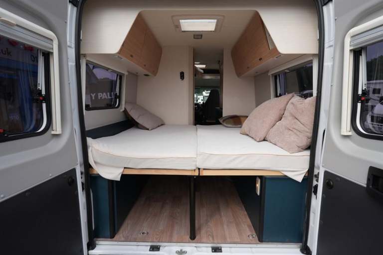 3500 KG Gross weight standard driving licence required only...L-6.36m...W-2.05m...H-2.58m... This exquisite one owner low mileage Knaus Boxlife 630, benefitting from service, cam belt and water pump replacement at 8905 miles. The pinnacle of a sophisticated functional 4 berth 4 travelling seats van conversion. Which combines of a versatile everyday vehicle and of course the spontaneous getaways. Welcome aboard the complementary stylish features of this beautiful Knaus. Featuring the sumptuous individual longitudinal beds, at the rear. Of course the perfect place for a cosy nights sleep, awaking up totally refreshed, ready for the days adventure. With ample storage above and below for your personal belongings. Adjacent the combined washroom/shower, with a shower curtain, toilet, corner hand wash basin, above a cabinet for the toiletries needed, while exploring and good size vanity mirror. Position directly opposite the modern kitchen area, with 2-burner gas hobs, fridge freezer, sink and plentiful compartments for the kitchen utensils used. Moving forwards the ultra practical peaceful dinette lounge area, featuring two front facing integrated travelling seats, a adjustable free standing dinning table and if you swivel both front captain seats around. Will simply increase the seating capacity. The perfect space for socializing with the family, after the days exploring and enjoying each other company, absolute delightful. When ready for a good nights sleep, an electric drop down double bed above. That seamlessly integrates neatly into this area. This finally makes up the extremely ingenious sleeping arrangements of this stunning Knaus Boxlife 630 van conversion. Which benefits from an exclusive specification such as diamond cut alloy wheels, cab air conditioning, cruise control, cab blinds and of course will be supplied with all the original documentation, manuals plus to sets of keys. That's what you would expect from a one careful previous owner and ready to inspire the next adventurous family.