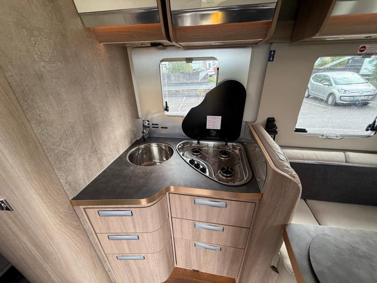 This Laika Ecovip 4012 is a 4 Berth Luxury motorhome, built to the highest design standards and beautifully finished. It is built on the Fiat Ducato chassis with 9 Speed Automatic gearbox, it has one owner from new with full service history, current hab check and 16,765 miles on the clock. It has a fixed island bed at the rear and next to this is the bathroom area with separate shower compartment. In the centre there is a well equipped kitchen, at the front is the lounge and above this is the electric drop down bed. This is a well appointed motorhome but has additional features including Hydraulic Auto Leveling System, Rear Air Suspension and Security Tracking. It also comes with Cab Air Con, Cruise Control, Rear Camera, TV, DAB Radio, Alloy Wheels, Sat Nav, Tow Bar, BBQ Point and Solar Panel. A stunning motorhome available for viewing by appointment in the Ribble Valley, call for more photos, videos and information.