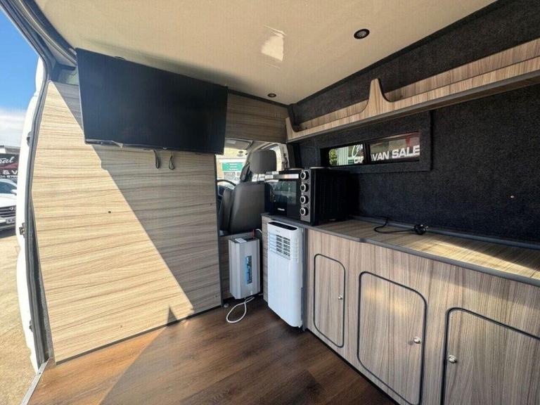 August 2020 LDV V80 2 Berth Motorhome finished in white. This is a high quality/standard conversion carried out by a professional company, The van has covered 130k miles from new and had just 1 previous keeper from new, The van has been registry serviced and maintained regardless to cost. The LDV starts runs and drives superb and is very spacious and comfortable inside, the specification includes fully insulated with laminate flooring & frontal partition, Large Power Invertor, Pifco Air Condition Unit, Cook works Oven & Hobs Large Bush Television wall mounted, 240V plugs, Rock & Roll Bed, LED Lighting, Shelving & Storage Cupboards, electric windows, power steering, remote central locking, electric mirrors, power steering. There is a small singled bed at the rear of the van which is perfect for a child or pet. 12 MONTHS MOT - NATIONWIDE EXTENDABLE WARRANTY - 12 MONTHS AA BREAKDOWN COVER - FRESH SERVICE FOR THE SALE The car comes with a nationwide warranty which covers you across the U.K. we can arrange excellent rates of finance and you can apply online at [Website URL removed] We can take credit & debit card payments and we can take your car, van or motorbike in part exchange for any more details or to arrange a test drive or viewing please call us on 01524 67222 or [Phone number removed]. Please note we are selling used cars and to expect some age related marks and ware if in doubt please dont hesitate to call and ask for more info..Rock & Roll Bed, Central Locking, Air Conditioning , Wall Mounted Television, Cook Works Oven / Grills, Blanc White, Cloth - Grey, 16in Steel Wheels, 2 Adjustable Sunvisors, 2 Speakers, 255 Degree Opening Rear Doors - Unglazed, 3 Point Seatbelts for All Seats, 8 Way Adjustable Drivers Seat, ABS - Anti-Skid Braking System, Air Conditioning - Front, Auto Locking on Drive-Away, Aux Input Socket, BAS - Brake Assist System, Cold Start -20 Degrees, Courtesy Light, Cruise Control, Daytime Running Lights, Driver and Passenger Airbag, Driver and Passenger Deep Door Storage, Drivers Seat Armrest, EBA - Electronic Brake Assistance, EBD - Electronic Brake Force Distribution, ESP - Electronically Stability Programme, Easy Clean Non Slip Cargo Mat, Electrically Heated and Adjustable Door Mirrors with Integrated Turn Signals, FM-AM-MP3 Player and Bluetooth, Fixed Dual Passenger Seat, Front Mudflaps, Full Size Spare Wheel, Full Width Glazed Steel Bulkhead, Grab Handle on B Pillar, Headlamp Levelling, Height Adjustable Front Headrests, Hydraulic Power Assisted Rack and Pinion Steering, Integrated Cup Holders, Intermittent Front Wash-Wipe, LH Sliding Side Load Door, Load Compartment Interior Light, Low Cargo Floor Height, Moulded Cab Headlining, Non-Slip Entry Steps, Overhead Storage, Part Body Colour Front Bumper, Power Windows - Front, Rear Parking Sensors, Recirculation Heater, Remote Central Locking, Roof Console, Rubber Floor Covering, Side Impact Protect System - SIPS, TCS - Traction Control, Tie Down Loops, Tinted Glass, Trip Computer, VDC - Vehicle Dynamic Control