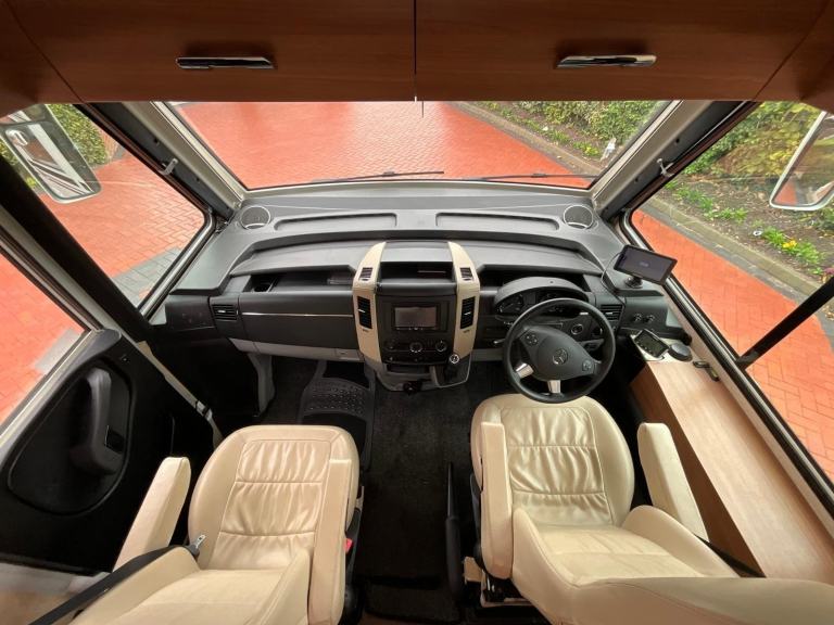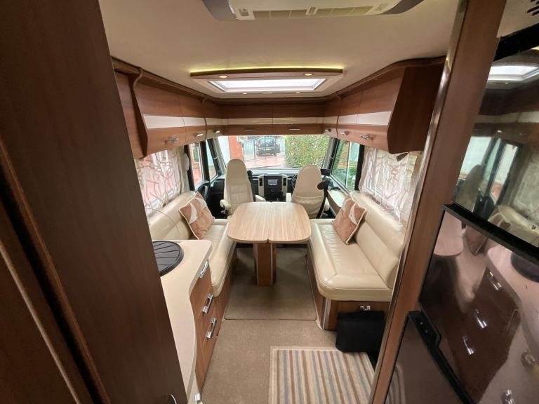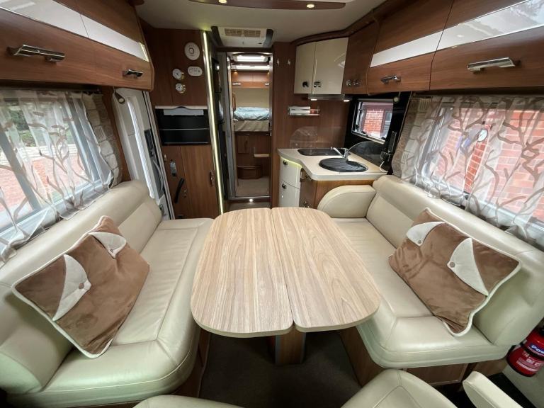 Motorhome Depot Derbyshire and South Yorkshire are pleased to present this beautifully designed 2014 2 berth Le voyageur LVX8 Premium Class on the desirable 3.0 Mercedes Automatic chassis. This vehicle is located in Burton Upon Trent, Derbyshire.This luxury A Class otorhome is perfect for couples looking to explore without leaving the comforts of home behind. With an automatic gear box and V6 engine it’s the ideal vehicle for longer, continental tours. At the rear of the motorhome, you will find a comfortable double rear fixed bed complete with TV. This is built above a large garage space offering ample storage for larger items such as mountain bikes etc. Moving forward is the en suite style washroom facilities including a cassette toilet, wash basin with mixer tap, mirror, large separate shower and storage. Next you will find the fully functional and well-equipped kitchen, providing all your cooking needs with a sink with mixer tap, a 2-ring gas hob, extractor fan, combined oven & grill, a large fridge with a separate freezer, pull out spice rack, electric drop down shelf suitable for coffee machine or kettle and an abundance of storage. In the heart of the motorhome is the light and airy dinette area which has 2 3 point seatbelts fitted on fold away travel seats so that the vehicle can travel up to 4 occupants in safety. The front 2 captain seats swivel round to provide further seating so that there is plenty of room for multiple guests to relax, eat or watch TV around a large central table complete with hidden wine rack. Overall this is a stylish motorhome that has plenty of storage and comes with lots of additional features. Additional extras: Vanbitz strike back alarmCarpetsAlde heating2 TVsReversing cameraElectric awning2 solar panelsSatellite system Cab air con Hab air conUnderslung gas tank Tow barExternal BBQ point Tyre pressure monitoring system Upgraded stereoLeather upholstery Recent service by merPlease get in touch to view the additional photos and walk round video. Motorhome Depot Derbyshire and South Yorkshire would be delighted to arrange viewings of this motorhome. All our vehicles are HPI checked, and a full demonstration of the vehicles will be carried out on handover.Part exchange and finance welcome, for further details and to arrange a viewing please call Tom on 01332 806905, [Phone number removed], 01144 055993, [Phone number removed].