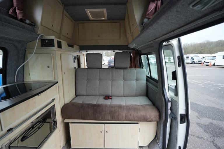 2800 KG Gross weight standard driving licence required only...L-4.73m...W-1.98m...H-2.62m...An absolute perfect first/starter van conversion for someone. Ideal for a adventurous couple. Wishing to experience the freedom, of the open road. The Leisuredrive Crusader, are beautifully British engineered. Together with the durable Volkswagen diesel engine. Which has been fastidiously maintained with it's previous owners at 13k,25k,38k,42k,44k,46k,49k,52k,56k,63k,64k and 66335miles. Including cam belt and water pump replacement at 49300 miles. Makes this Crusader an quintessential choice for a discerning couple. Who literally require a compact van conversion, that they could use as there daily commute ! As only measuring 4.73 metres in length. Absolutely perfect for those spontaneous getaways. On entering your greeted with the galley style kitchenette. Featuring 2-buner gas hobs, combination oven grill and fridge freezer. Ideal for preparing quick snacks while on the move. There's even ample storage compartments for your personal belongings needed while exploring and a porta potti just in case! The