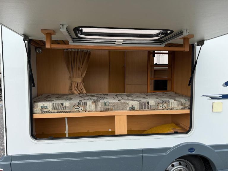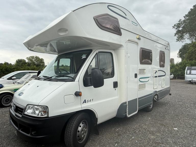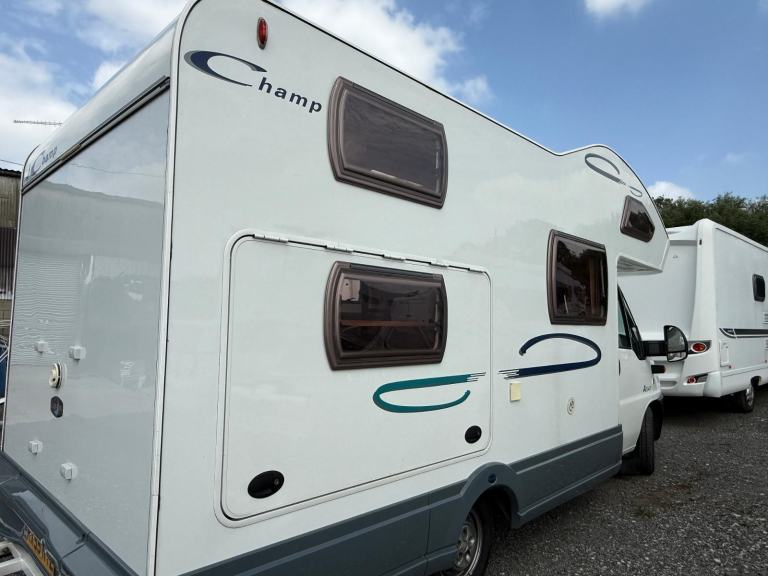 Lunar Champ A541 4 birth 4 belt compact motorhome absolutely immaculate inside and out with only 21600 miles and 2 previous owners from new we expect demand to be high for this fantastic family motorhome.2 rear fixed side bunk beds over cab double bed ,tow bar. new starter motor, new engine and habitation batterys just had 12months Mot with no advisory's.we recently sold this lovely motorhome unfortunately due to health issues they have asked us to sell it for them.