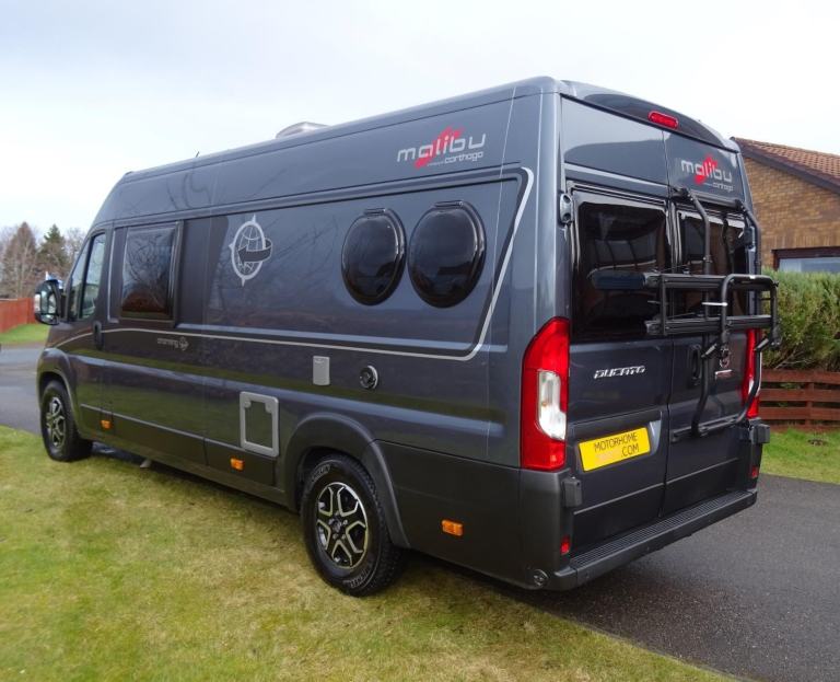 We have the pleasure to present this luxury Carthago Malibu First Class Charming GT Skyview 640 LE RB camper, that is based on a Fiat Ducato, with a 2.2-litre engine and 9 speed automatic gearbox , it has covered only 5,026 miles since being first registered in 2023 and is 3 berth with 4 seat belts. There is real attention to detail given in the design and build quality in this top end Malibu and the interior finish is stunning. As you enter the Camper into the central lounge area, with its forward facing bench seat and the 2 front Captain seats that swivel, all around an extendable table and with the large panorama skylight above, it creates a fantastic lounge/dining area to relax in once you have reached your destination. Mid ship we have the kitchen area with a 2 ring gas hob, sink with mixer tap and a large fridge with separate freezer compartment. Opposite is the all in one bathroom which has some great features. The door can open into the gangway with a folding leaf giving a private area for dressing in the morning. The toilet a Thetford cassette style unit with electric fresh water flush can be retracted into the bulkhead whilst the shower is in use and there is a fold down flap above to keep it dry. The white corner sink unit has a chrome mixer tap also. There is a white plastic tambour door that also can be used whilst the shower is in operation to keep the area dry. At the rear is the real stand out feature of this camper with its large double bed and the amazing multifunctional storage area. As bed can also be folded up on both sides whilst in transit to create enough space for mountain bikes and everything you will need for your adventures. There are too many extras in this luxury camper to list, but include a full chassis pack, main cabin package, style pack, Gas Low refillable LPG bottles, External BBQ point, Solar panel and it has to be viewed to truly appreciate the quality of this Malibu and all the features it is loaded with. We believe the first person to view this Camper will be the person that will buy it. For further information and to see more photographs please call Neil on [Phone number removed]. I can offer 31 days free drive away insurance with this Camper. Part exchange, Finance and Warranty options are also available. The Camper is located near Inverness for viewing by appointment