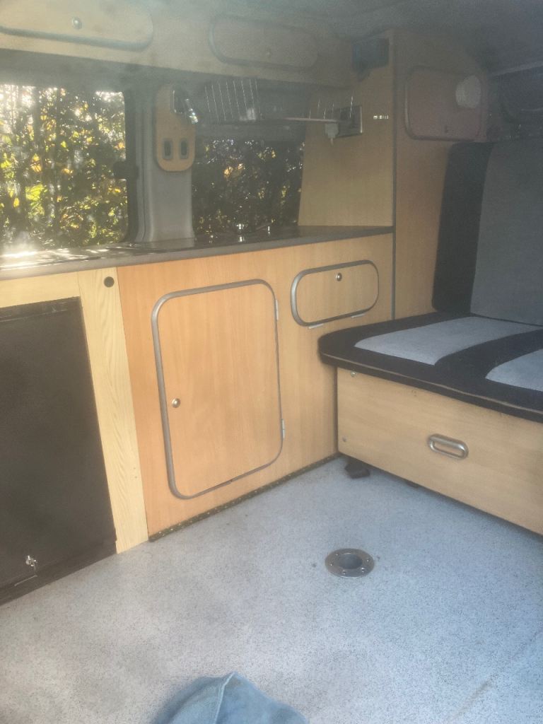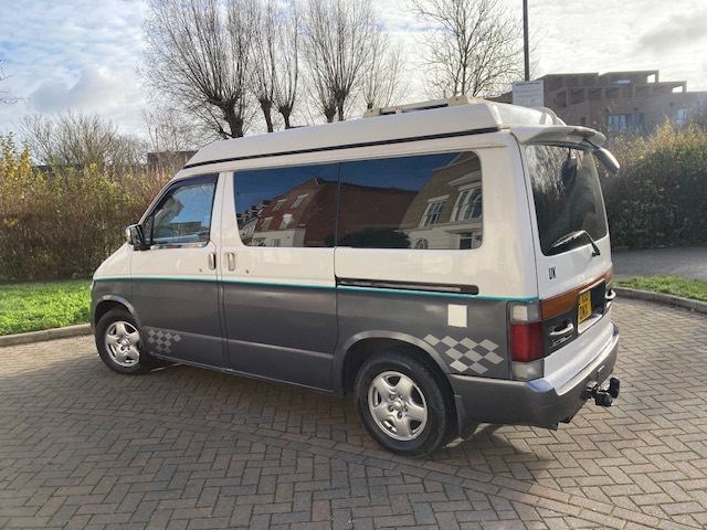 1996 Bi- coloured Mazda Bongo camper-van automatic diesel 2.5 L. Ready for new adventures it has taken us near and far. Imported and converted 2008. Odometer reading 115000km / 73000 miles. Fully equipped 4 berth accommodation and belted seats with comfortable rock and roll bed with storage below. There is extra two berth accommodation under the automatic pop up top with zipped window covers. A kitchenette is part of the conversion with gas hob sink and new 12 volt fridge with storage above and below. Other facilities included are solar panel with split charge system to leisure battery 240 volt hook-up and plug socket usb sockets new radio tow bar. Power window blinds and side awning