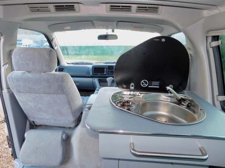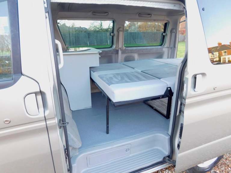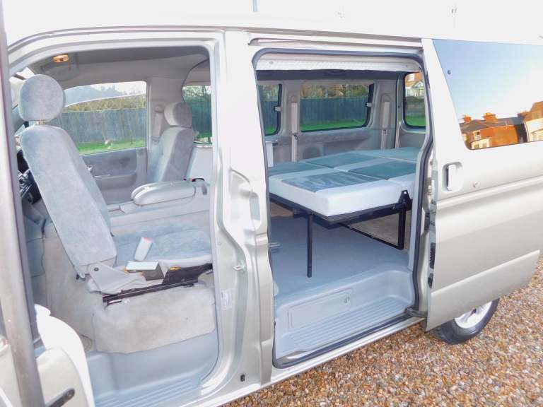 The Cab is a very Comfortable place to be with its Commanding Driving position, Automatic Gearbox, Air Conditioning, Radio CD player, Central Locking, Reverse Parking Sensors, and Electric Windows and Door Mirrors. The Side Sliding Door pulls in electrically to close, and we have Silver Screens for the Cab.You Could easily get an Inflatable Awing to more than Double your Living Space. We have Never had a Mazda Bongo in Such Outstanding Condition, so this Must Be Seen…. Only 67,250 miles from New.