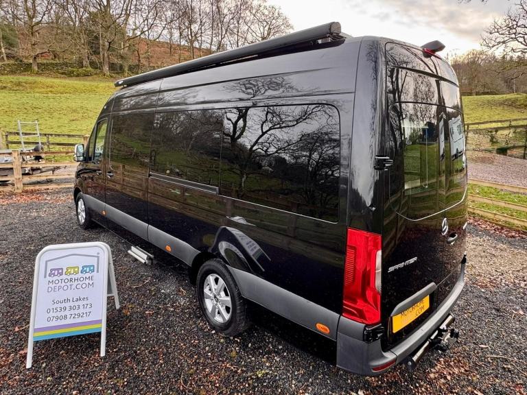 This Mercedes-Benz conversion is truly stunning, high-end utility vehicle and a genuine cut above the rest. Suited to VIP transport, touring artists, luxury travel, or high-end private use.Obsidian black metallic and converted by Harp Automotive Corp Ltd, this luxury VIP vehicle has been used lightly, (slept in for just three nights), and presents in outstanding condition throughout. Near-new condition with a level of specification rarely found. This is a rare opportunity to acquire an exceptionally low-mileage, luxury Sprinter conversion that delivers the experience of a bespoke £120k+ build at a significantly more accessible level.Registered 16/02/202110,600 miles with full service historyCream leather diamond-patterned upholstery with shiny black interior creates a refined, executive lounge feelLED coloured lighting with remote controlPlenty of storage including cupboards with built in lightsElectrically reclining rock-and-roll bed, two additional electrically reclining rear seats with armrests, provides exceptional comfort whether travelling or relaxingFully enclosed shower room with toilet and sink with electric fanDiesel-powered Truma central heating and hot water with diesel hob (also an auxiliary heater), delivering efficient off-grid performance without reliance on gasElectric roof Maxxair Airxcel air-conditioning hatch , solar panel, battery-powered inverter supplying plug sockets and mains powerMicrowave oven and fridge (both unused), Panasonic smart TV, audio system and fresh water storageElectric Fiamma® F80S awning, fully electric Lippert 600mm deployable step, towbar with electrics6.9m long, 2.3m width, 2.6m high, 2.1 314 CDI Panel Van 5dr Diesel Manual RWD L3 H2 Euro 6 (143ps)Viewing by appointment only is highly recommended to fully appreciate the quality, finish and specification.Contact Richard by clicking, "ENQUIRE NOW", for further information and an extended photo file.Located near Windermere, Cumbria.Please Note: Whilst every effort has been made to ensure the accuracy of this vehicle information, some errors may occur. Please do not rely solely on this information or images, do your own research, vehicle inspection and check with the manufacturer any items that may affect your decision to purchase this vehicle.All vehicles have been HPI checked, and a full demonstration will be carried out at the handover.Part ExchangeFinance1 Month Free Drive Away Insurance(Subject to status)