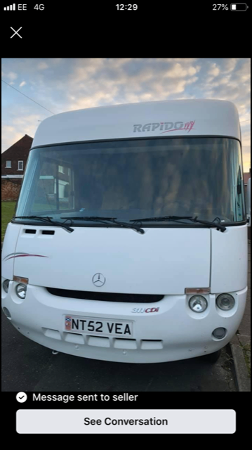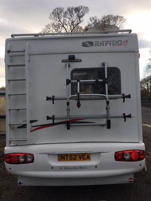 Recently MOT'd. LOW MILEAGE ONLY 71535 MILES. Located in Aberdeen, this hugely popular L/H/D RAPIDO LE RANDONNEUR 985M Motorhome, 4 berth with 4 seat belts A-CLASS. Specification includes the much sought after rear fixed double bed layout with the added benefit of a pull down double bed. Based on the proven Mercedes-Benz Sprinter chassis along with the 2.7 diesel engine with manual gearbox. Enter via the electric step through the habitation door, you are greeted by a sociable living space with the kitchen immediately in front and seating off to the right. The kitchen offers facilities such as circular stainless steel sink with mixer tap, 3 gas burner hobs and combination oven and grill, extractor fan and Electrolux fridge and separate freezer box above. A generous amount of utensil storage can be found in surrounding cupboards and the L-shaped worktop provides a good amount of space for food preparation. The front living area offers plenty of seating options around the dining table, incorporating the additional two captains chairs. Located directly above the cab and dinette is the generously sized manual pull down double bed which can be left ready made to simply stow away in the morning. All upholstery is in good condition throughout. At the rear is the main double bed, a fixed french bed with additional storage underneath and air conditioning fan/heater fixed directly above. Adjacent to the main bed is a spacious washroom that features a lined walk in shower cubicle with bi-fold doors, a Thetford swivel cassette toilet, washbasin, mirror and elegantly designed storage cupboards. The cab includes concertina fitted blinds, air conditioning and of course the fabulous panoramic A-Class windows. Outside is a wind out awning, electric step, a brand new Fiamma 2 bike carrier, external shower point, roof access ladder, roof mounted satellite dish and TV aerial, side locker access to under bed storage, full width ski or windbreaker locker with access from both sides and a mains hook up point and anti-theft electrical isolation switch. This motorhome has a maximum vehicle weight of 3500kg therefore no C1 licence is required, Comes with 2 sets of keys. The external length is 6.5m. Viewing is by appointment only.