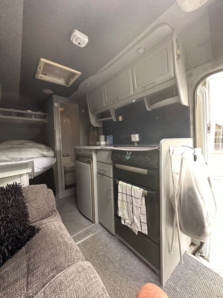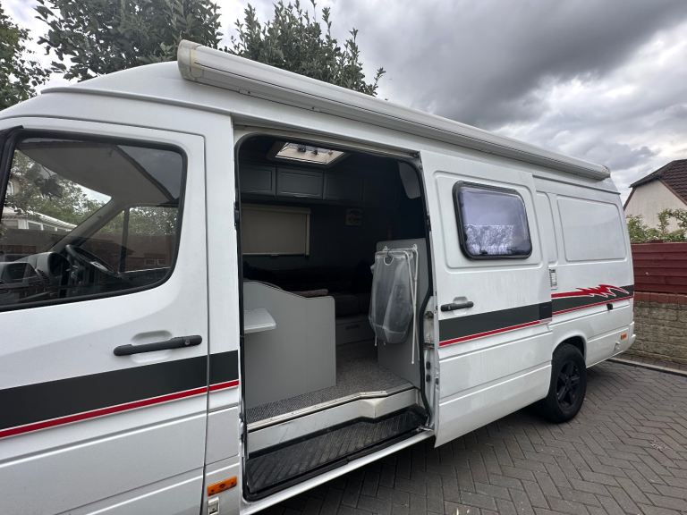 here we have my Mercedes Sprinter 311CDI campervan conversion. I bought it already converted but I have lovingly modernised the interior and refurbished the shower/wet room. It has a full size cooker with 4 gas burners,oven and grill, an electrolux 3 way fridge/freezer, tv/dvd, hot and cold water tanks, diesel fired blown hot air heating, all lights replaced to LED lighting and blue mood lighting with multiple USB charging points, a very comfortable fixed bed in the rear with thick foam mattress and memory foam topper. there is an L-shaped sofa system that converts into another bed with loads storage underneath and also plenty of wall and floor cupboards and drawers. it has a large roof opener in the van and also extractor fan plus fire extinguisher/blanket and CO2 alarm, it will come with various accessories ( plates/bowls/pans etc ) a rear tow-bar mounted bike rack and dash cam with reversing camera and two 5kg LPG gas bottles in the rear which has access through the rear doors with more storage it has a roof mounted solar panel with MPPT controller and a 4.5 mtr Fiamma awning. the engine has been replaced and has only covered approx 60,000 miles with receipts and it runs superbly. it has been serviced regularly and has had recent new injectors and further work includes replacement starter motor/alternator/battery and leisure battery/brakes with all receipts, MOT till March 2026 (a 12 month MOT will be issued on purchase).I have taken this van to Scotland on many occasions/Lake District/Ireland/Isle of Skye and to European Road Trips including France/Italy/Switzerland on 10 week trips and i have had some incredible experiences but it is time to venture further now and I need to jump on a plane for that. The bodywork and interior is in very good condition for its age with a few minor blemishes here and there. realistically this van only sleeps 2 people so if you are a couple looking to get away on some great road trips and adventures or even a single person who wants to live in a van full-time then this is the van for you without spending a fortune on a modern unit with none or very little of the spec that this one has..tried and tested and I have the photos of my trips to show you..any questions please ask.. no tire kickers or time wasters please. any sensible offers considered.