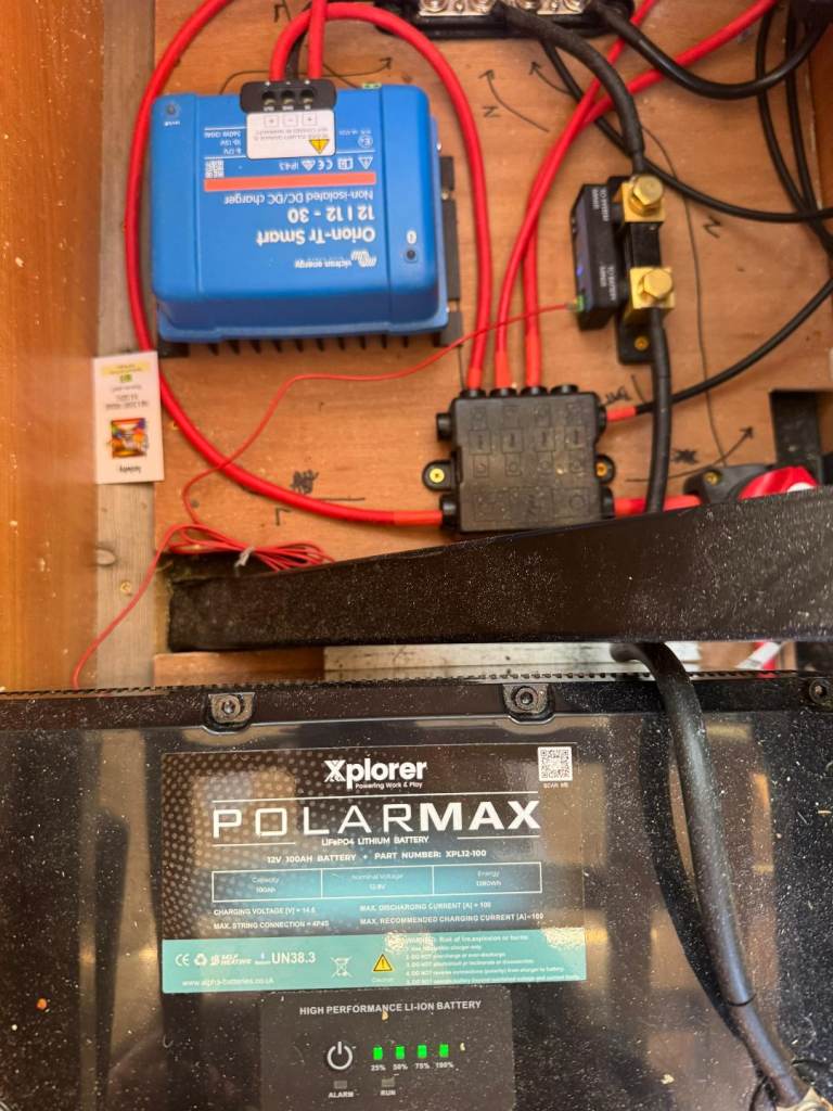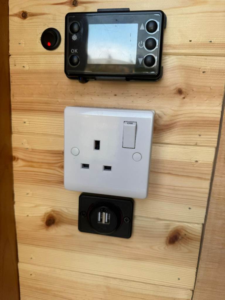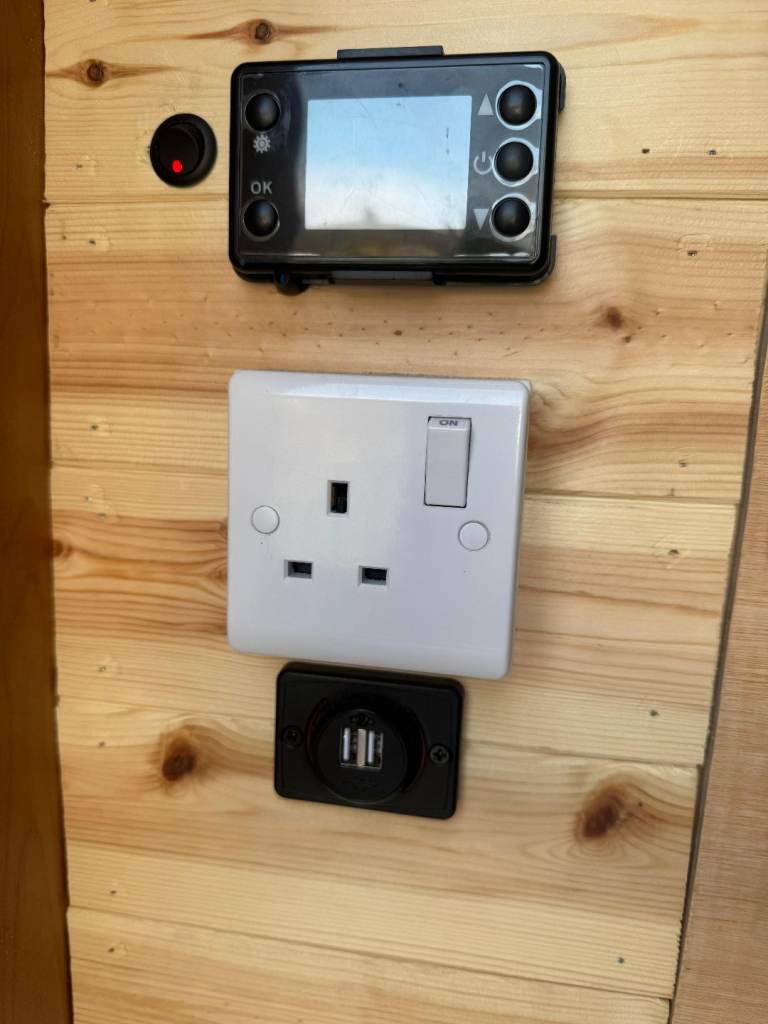 - full Victron electrical system including a Smart Shunt, DC/DC charger, 240v mains charger with an outside hook up, Solar Controller, 100ah Lithium battery and 440w solar panel. There's also a 1000w Inverter which powers 3 plugs around the van.