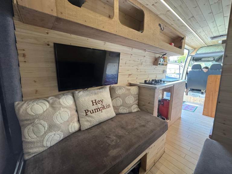 I also have an aftermarket large screen infotainment system which requires installation. The TV will be left in the van and there's also an electric cool box although there's wiring and space to take a 12v fridge.