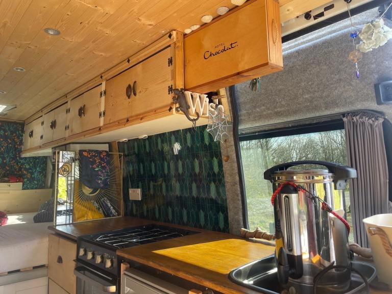 • Off grid electrics supporting fridge, pump for tap, touch sensitive lights in living space bedroom , extractor fan in kitchen plus usb sockets . Has inverter fitted so you can also plug in household appliances on 240 volts