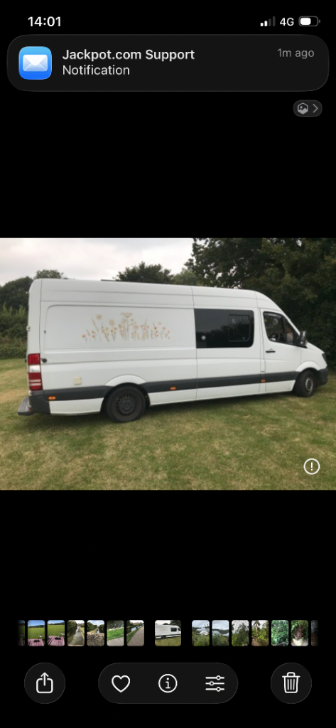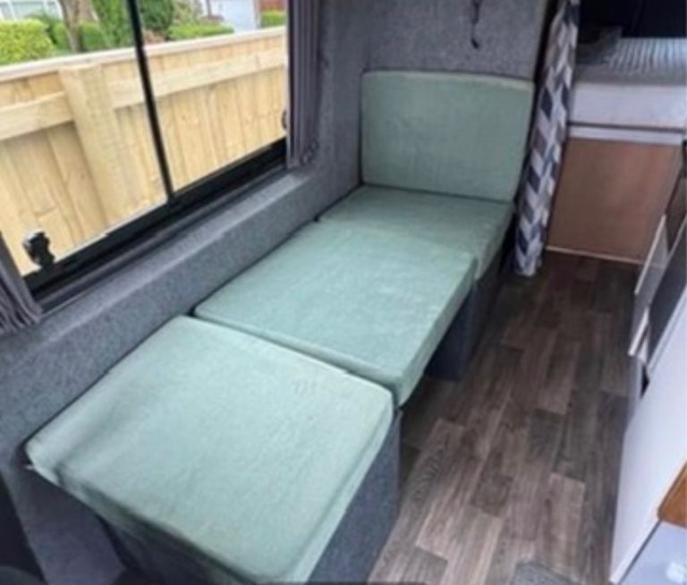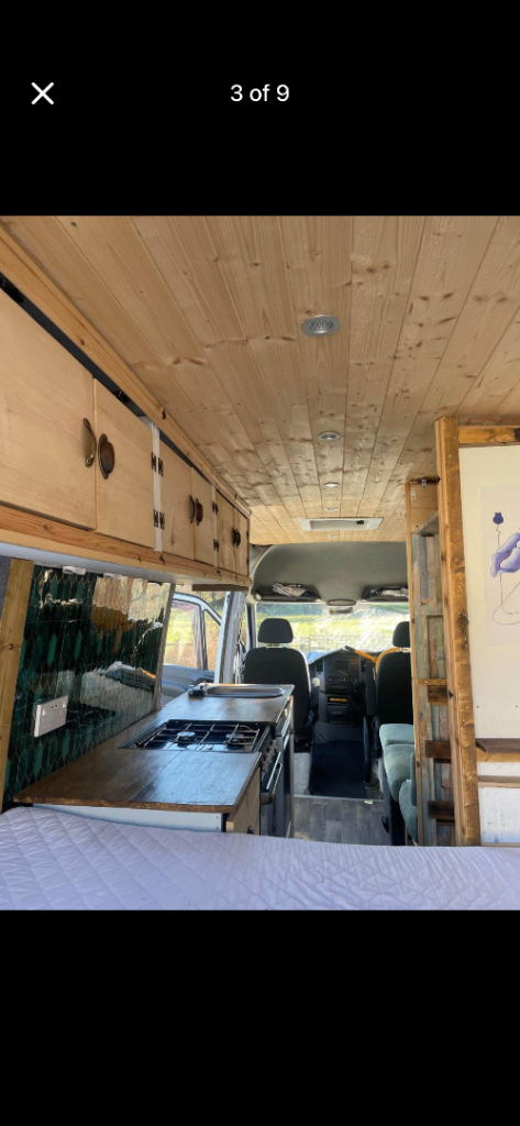 • plenty storage in “garage “ beneath massive king size bed plus loads of storage space in kitchen cupboards and full height wc space/ wardrobe as well as above head storage cupboards for the whole length of van ( including about bed )