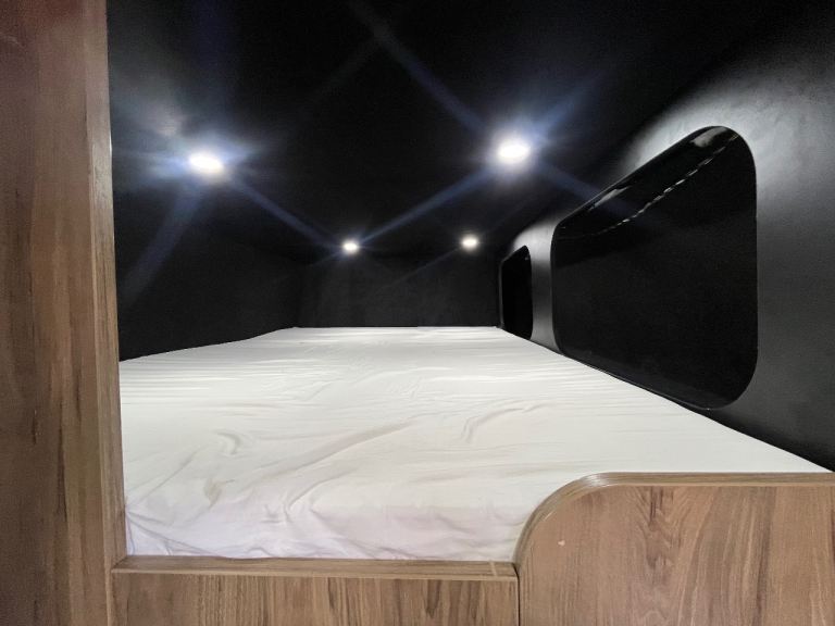 Large upper bed with built in ladder to access, below there is a Large garage underneath (1.3m high x 2.2m long).