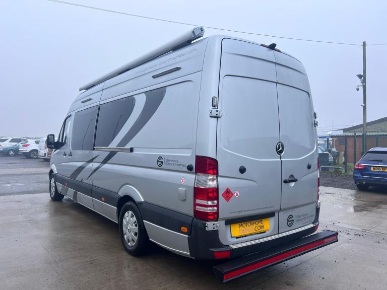 Looking for your next camper? Motorhome Depot Farnsfield are proud to present this 2015 Mercedes Genesis Sporthome with a manual gearbox. A well-equipped and versatile race van, ideal for weekends away or extended adventures.On entering the van, you are greeted by an L-shaped dinette, perfect for dining or lounging, which easily converts into a comfortable double bed. To the rear, there is a fixed double bed with a large garage, accessible from both inside and outside of the vehicle.The layout also includes a compact washroom and a practical kitchen area featuring a 2-ring gas hob, fridge and mixer tap.Built for all-season travel, the van benefits from a Truma heating system, a solar panel for off-grid adventures, and external BBQ and shower points, making it ideal for outdoor living.Additional extras include a reversing camera and sun canopy, completing this fantastic all-round camper.Could this be the next van for you? Contact us today to arrange a viewing.