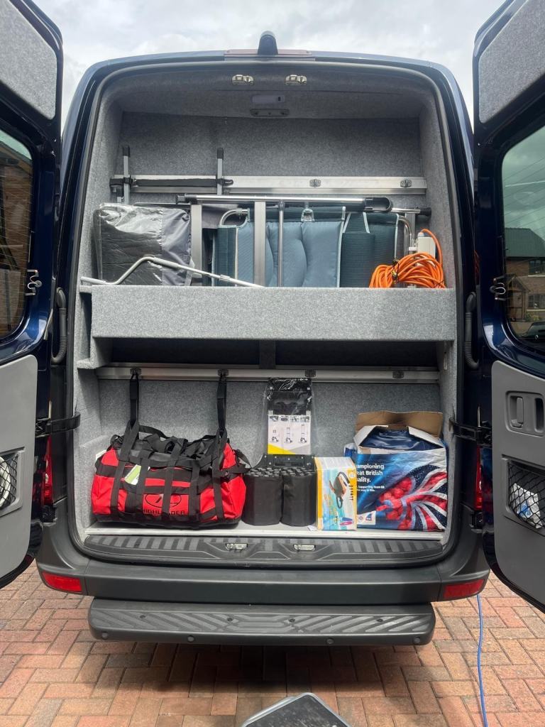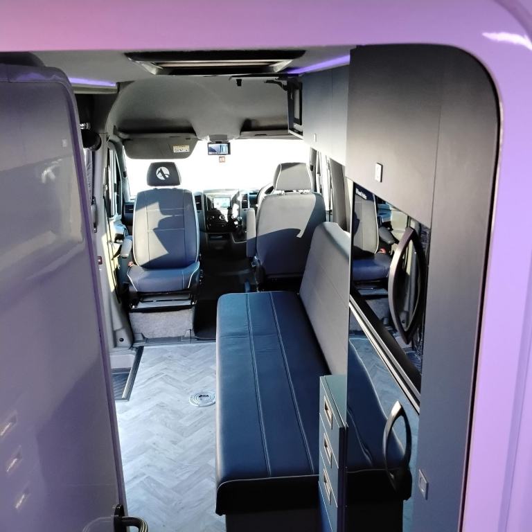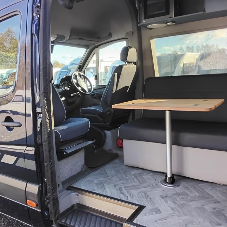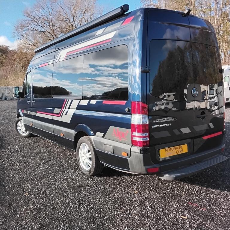 This stunning campervan was been converted as a new vehicle by one of the UK's leading specialist vehicle conversion companies into the Mercedes Sprinter 316cdi Auto, Alpe Luxury Camper. Transforming every journey into a refined travel experience — crafted for those who expect more from life on the road. Smart glass, and a host of advanced electrical systems lift the Alpe Mercedes Sprinter, into a world where premium engineering meets first-class comfort. Emergency vehicle expertise, has been applied to produce a luxury campervan with a radical interior layout, embracing many state-of-the-art features into its design. This vehicle features an I-pad as a controller that monitors the water, LPG, and battery power levels by a simple tap on the screen. All the habitation windows can be darkened using electric ‘smart’ glass feature which must be seen, again by just a tap of the screen.The side sliding door is electrically operated and glides open automatically to reveal a full length settee opposite. Both the front seats swivel creating a large, comfortable and inviting lounge seating with a neatly stored folding table for dining.Beyond the settee on the offside is the fridge and microwave unit and a tall wardrobe. Across the rear of the van is a fully sealed wet room which incorporates the toilet, washbasin and a large shower area. There is an extractor fan built into the [Website URL removed] forward is a hob with both an induction and gas hobs, an oven below, cupboards above then a cleverly designed unit incorporating a large pop-up Smart TV that rises up at the rear of the unit with a folding table/work surface in front. There is Starlink, Wi-Fi fitted (which will require a subscription) instead of a conventional aerial.The bed is an amazing piece of design in itself - the settee has a joystick controller on its base which when operated allows the whole settee to move towards automatically towards the door, then the backrest to recline forming a queen-sized double bed in the centre in the van. The upholstery is all finished in a durable waterproof material designed for outside use so will be easy to wipe down and keep clean. There is a large storage box beneath the seat to store bedding etc, and a row of high level cupboards above.There are two ‘smart’ Victron leisure batteries fitted along with a solar panel, a DAB radio with speakers in the living area and mood lighting. There is a Webasto heater and full habitation air-conditioning system fitted too.The cab area features integral blinds to the windscreen and side windows and a screen for the 360 degree external cameras.Externally there is are underslung LPG and water tanks with their filler caps discreetly hidden under the bonnet and behind the fuel filler cap, 360 degree cameras, wind-out awning, reversing sensors and hook-up point. There is also an external BBQ point. Behind the rear doors is extra storage and hanging space for outdoor items and an external shower point with shower hose.Cantrak tracker is fitted - subscription required to transfer to new ownerThis is a truly unique design and makes a stunning vehicle for campervan life both on and off grid.Featuring...... Extremely low mileage Automatic gearboxPowerful & economic 160bhp Mercedes engine Electric sliding side door I-Pad controller 360 degree cameras - Reverse camera & "e-mirror" giving confidence building consistent and clear rear view whilst travelling and manoeuvring Fiamma Wind-out awning, with edge illumination Smart glass to habitation windows which tint adjust for privacy, adjust to sunlight, and reveal breathtaking views at the perfect brightness. Wet room, including wide deep sink, Dometic toilet, mahogany anti slip insert, and shower Habitation air conditioning (Dometic) Webasto heatingFlyscreen to side access door Pop-up Smart TV 2 x 300Ah Smart Victron leisure batteries (giving real off grid capability) Solar panels Integral cab blinds Induction/gas hob Alarm and tracker King size (1450mm x 1900mm) electrically adjustable bed Adjustable steering column Drivers and passenger seats adjust in all directions Warranties available Colour adjustable LEDs in habitation area and awning outer edge Apple car play, (android equivalent compliant) Programable (diesel heat, hook up, solar), heating management system allowing frost protection and one touch winterisation, light weight 3PIN Elec. Hook up with adaptor Advanced tech integration ensures effortless control—lighting, climate, entertainment, and window settings all at your command External BBQ point External Hot & Cold shower 100 ltr fresh water tank with under bonnet filler All instruction manual stored within on board management Ipad 180 degree rear door opening, with magnetic stop, opening to spacious and well planned storage area Very well equipped kitchen area including..... Thetford extractor
