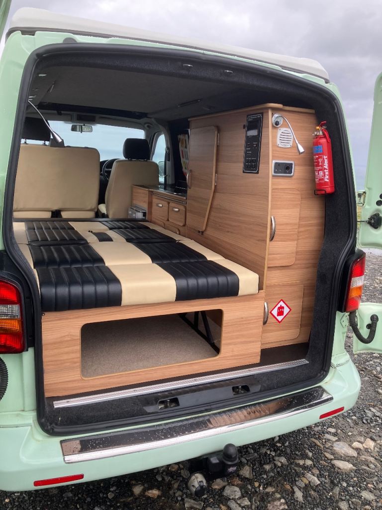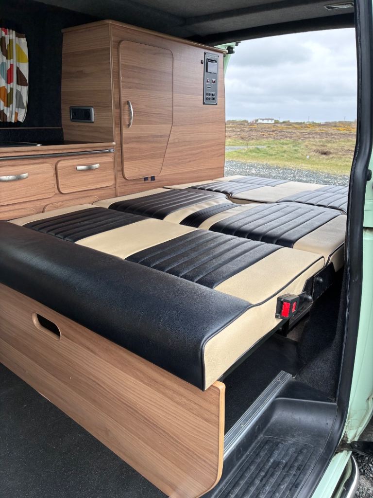 Internal equipment includes quality Eco Waggon pop top with double bed, 5 seats and rock and roll double bed. Swivel double front seat with storage, fitted units with Smev double gas hob and sink, Waeco fridge. Sat nav with reversing camera.