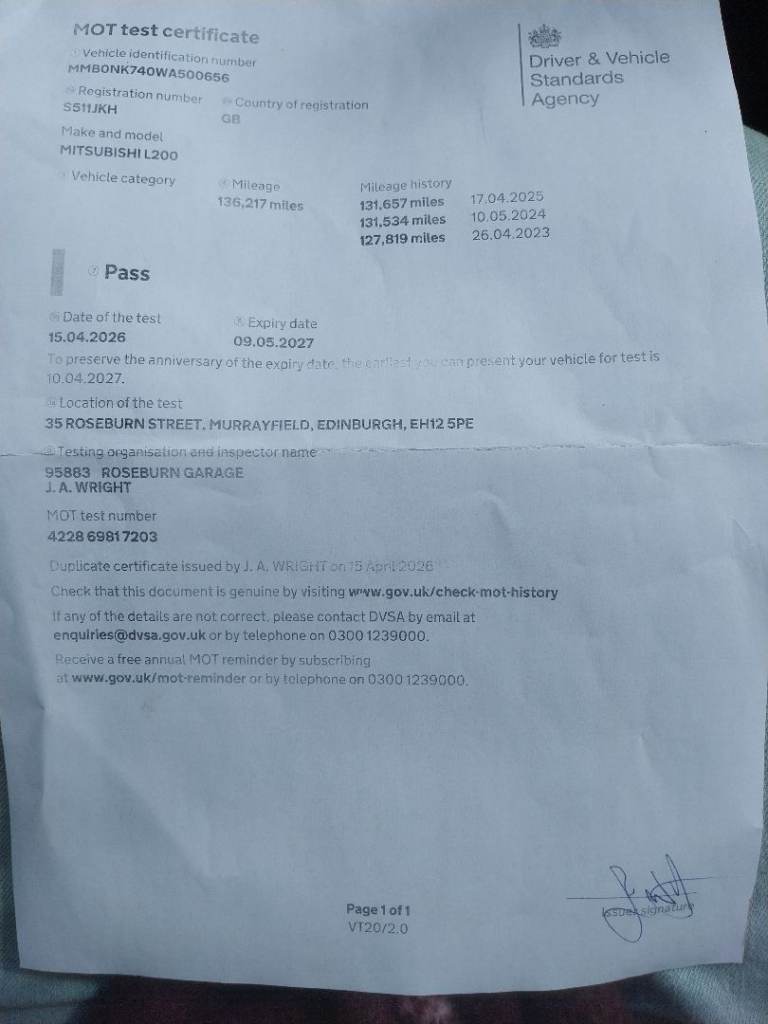 * MOT until 09/05/2027